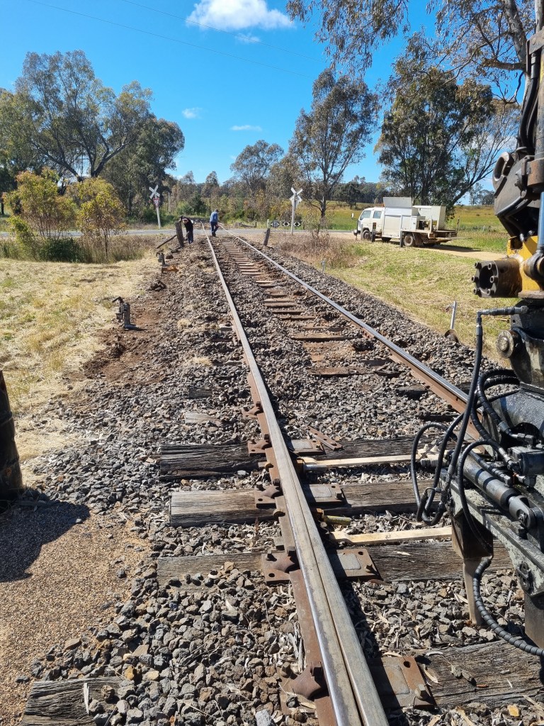 Yesterday’s work needed to be tamped and the approaches to the crossing lifted considerably to match what will be the new track height. The crossing us currently 60mm below the road level so we’ll aim for a 75mm raise and that’ll allow 15mm for future asphalt re-topping.