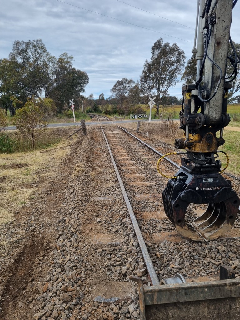 With a good run over with the bucket, it’s come up looking very clever! The concrete sleepers either side of the roadway will remain and any timber we’ll be digging out with the works and renewing the ballast below to ensure drainage.