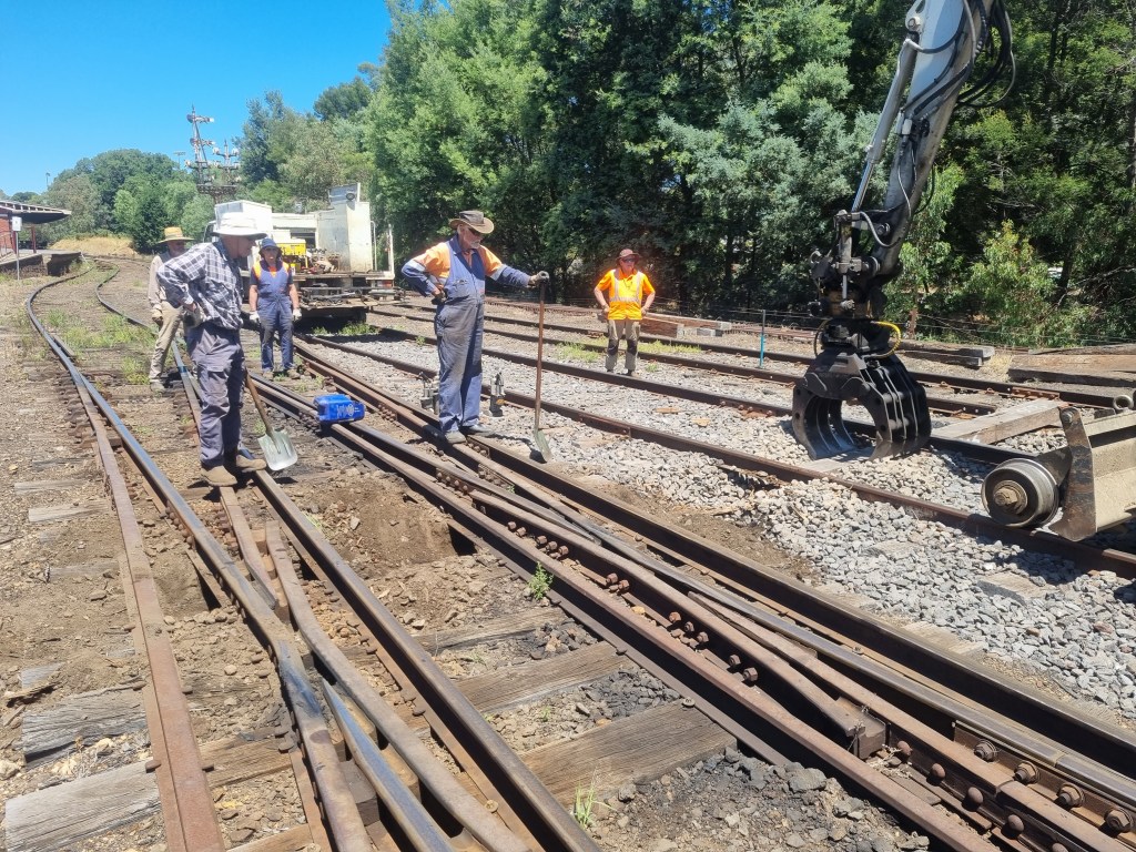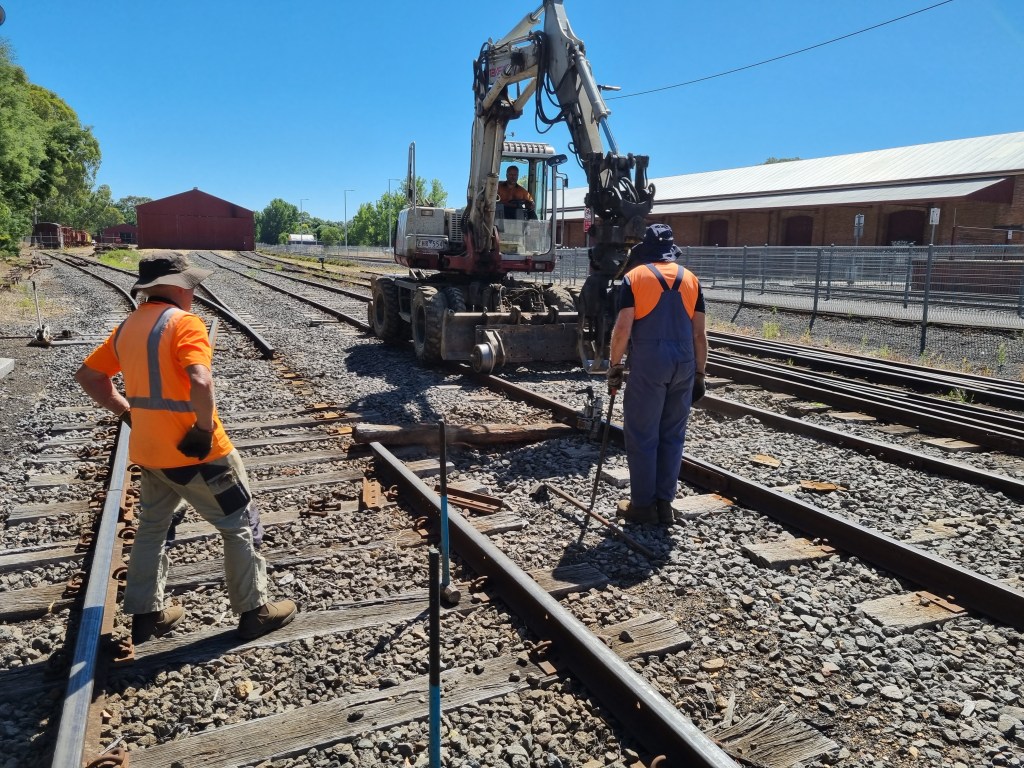 Tuesday was a productive day, with another good few sleepers installed into 4 road and a couple of point timbers installed into the double compound.