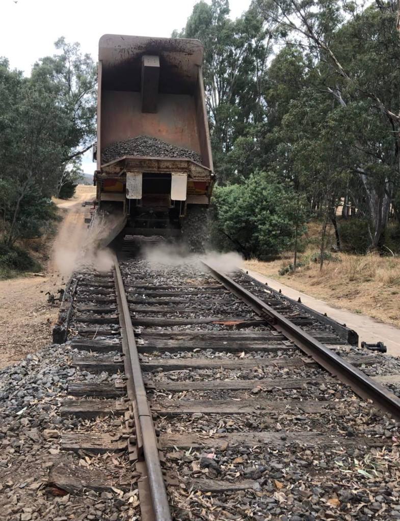 With the takeuchi back in action, we had a bit of tamping work still to go at Muckleford Creek Bridge. However we did need to top up the ballast a bit, so today was the first proper use of the hirail tipper.