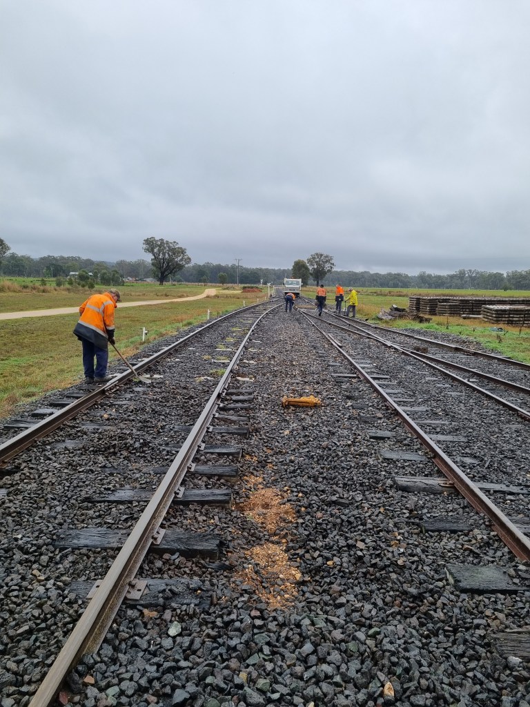The rest of the day was more or less spent fixing a geometry fault that was developing near this turnout at Muckleford, this one is due to embankment settlement, given how wet this year is (on top of last year’s wet year), it’s likely we’ll be attending to many of these settlement faults in the coming months.