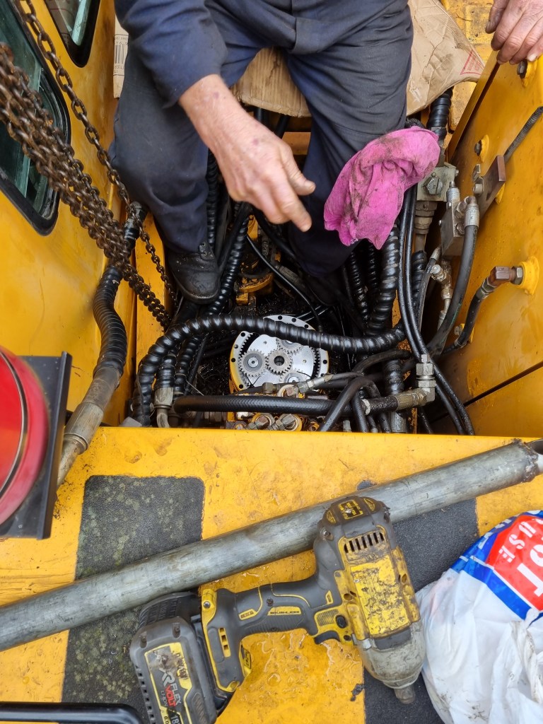 And on the big digger front, its new slew reduction gearbox is now in and fitted! It arrived on Friday, and we’ve wasted no time getting it installed. We ran out of time to connect up the hoses today, but we’ll get to that tomorrow or Wednesday, give it a good test and then send it back into the field to do another 20 years of work!