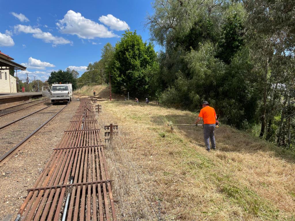 The afternoon was spent heavily attacking the overgrowth at Castlemaine Station, which seemed to have gone from a few spindly weeds a few weeks ago to grass tall enough to cut hay from! A significant improvement.
