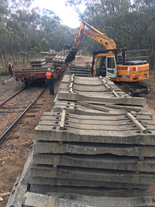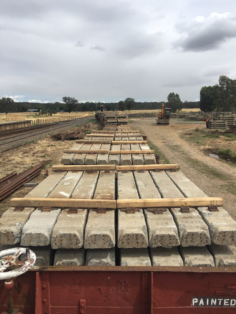 The afternoon saw us mix things up a little, with 264 low profile sleepers taken through to Maclise Street Crossing, for spot replacement between Rowe St and Midland Hwy crossings over the next 2 weeks (while the extra wagons are being prepared for the next sleeper trains).