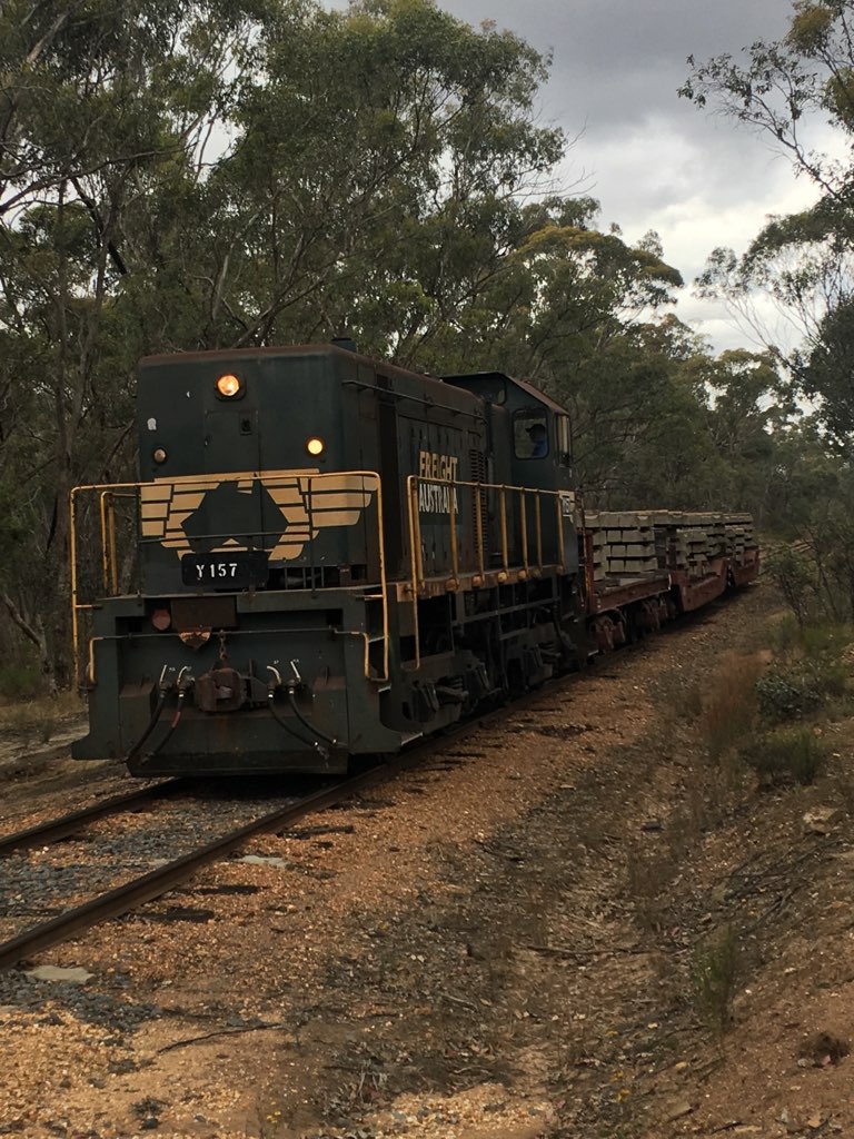We’ve decided to be more effective at this, it’s time to drag the other two flat wagons back in as sleeper carriers, taking the full train up to 6 wagons, and allow around 600 per train rather than the current 450, keeping just inside the load limit for a Y class. The extra wagons, QN ballast types, haven’t seen much use for a few years, so before we press them into heavy service they’ll be given exams at Castlemaine – but it would be rude if they just got a free ride to Castlemaine, hence they were put to work on their delivery to the workshops.