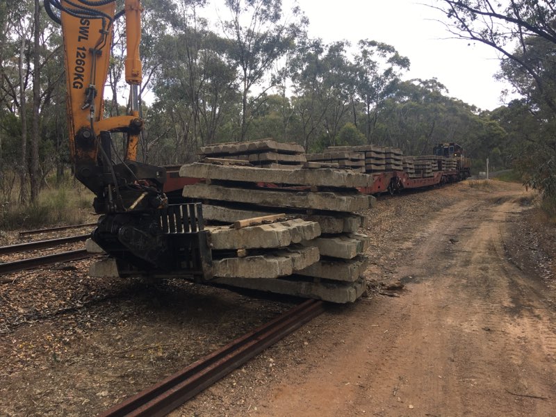 The equivalent to another train load of sleepers were loaded at Muckleford, and it is starting to show a notable dint in the stockpile there.