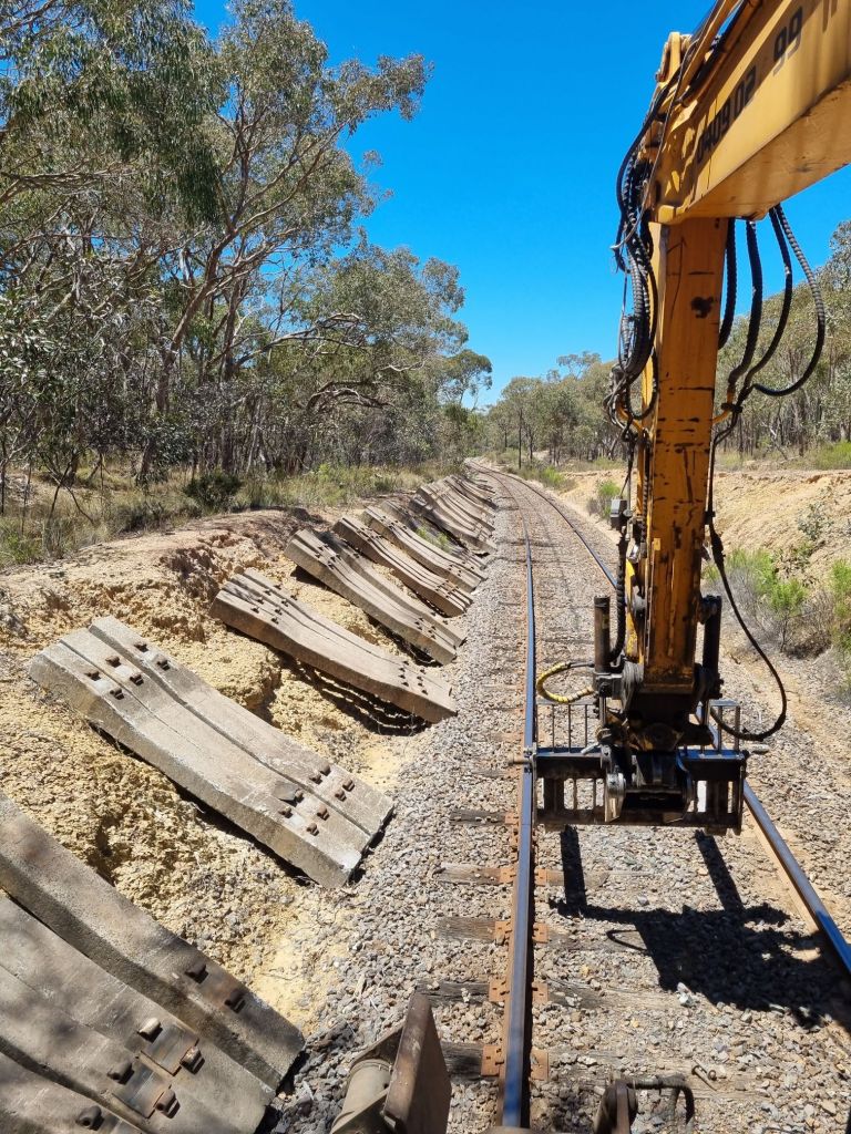 An action-packed day of collecting sleeper from the stockpiles and dropping out as needed beside the track.