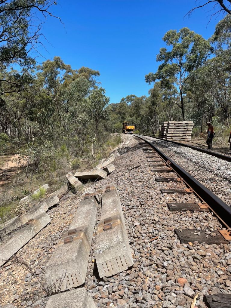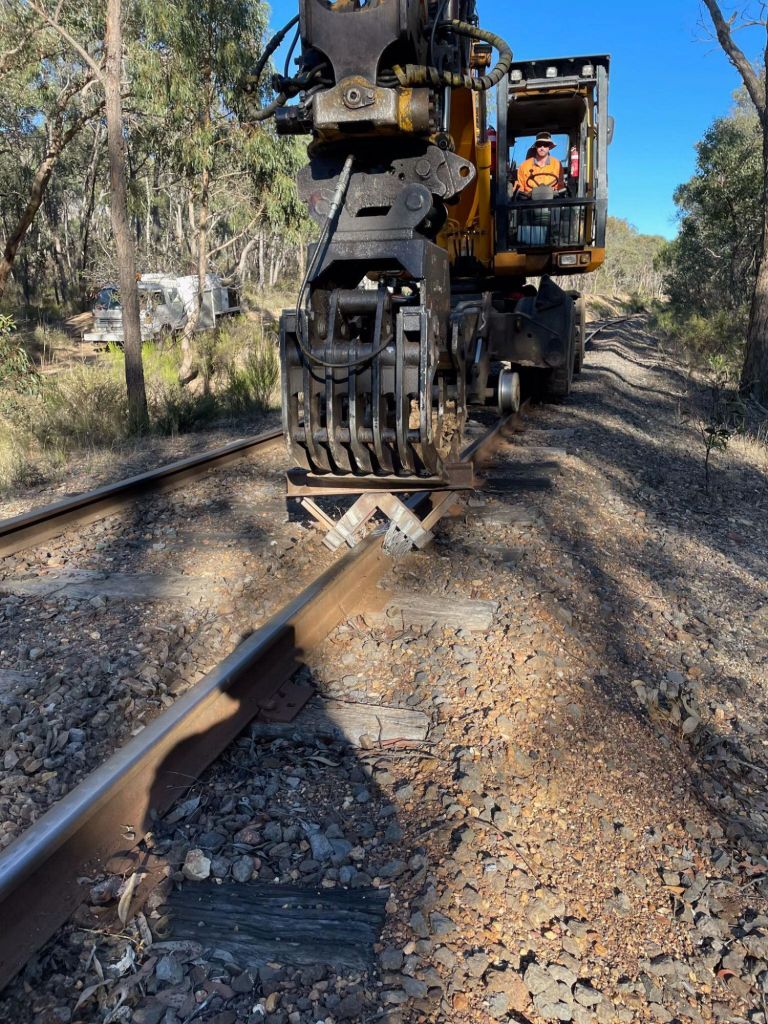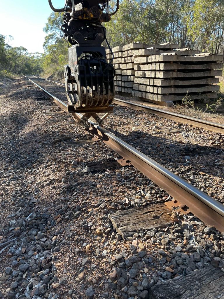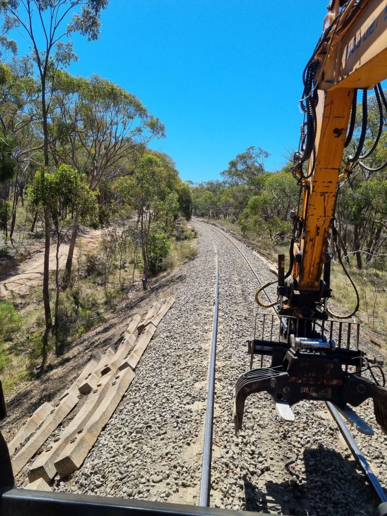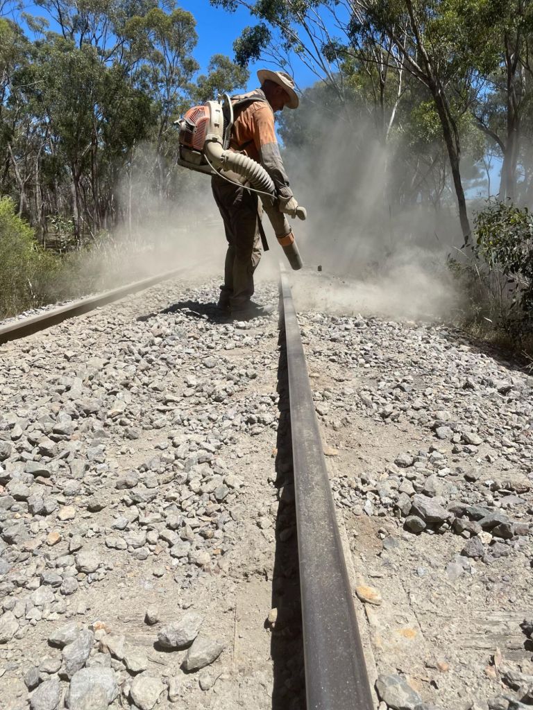 Mark 2 will use something a bit better than a steel rope found lying in the grass, however consider we’ve cobbled it together for less than $20, we’re staggered at the result, it requires about 4 passes over the rail to get a good result, especially in the heavy rock, it managed 4 passes over each rail from Pipeline Crossing to the start of the long straight near Bendigo Road, which has probably saved us nearly 1 full weeks worth of work flicking rock away manually – definitely worth the hassle.