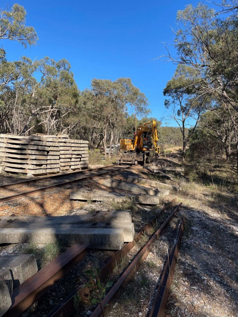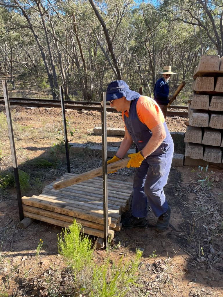 We’ve made the job a little bit smaller today however, by stacking and bundling up all the gluts that had been used to stack the sleepers in the piles, we’ll collect those up at some stage and rehome them.