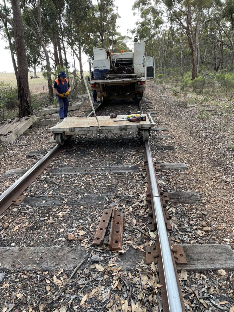 Thursday’s gang will meet at Maldon at 8am, then out around the Muckleford area discharging sleepers, hopefully we’ll get another 2 train loads dropped out tomorrow and at least one more on Friday, meaning we should just about get all the sleepers needed to be transported out between Maldon and Pipeline Crossing, with a large number also dropped out between Pipeline Crossing and Muckleford.