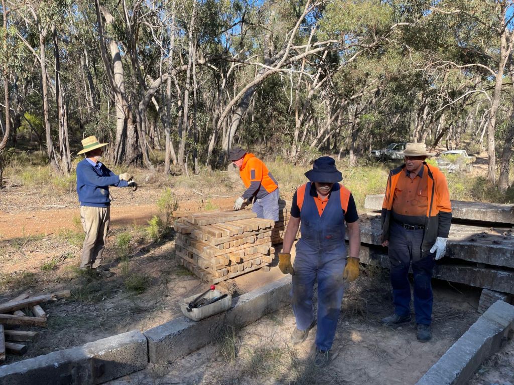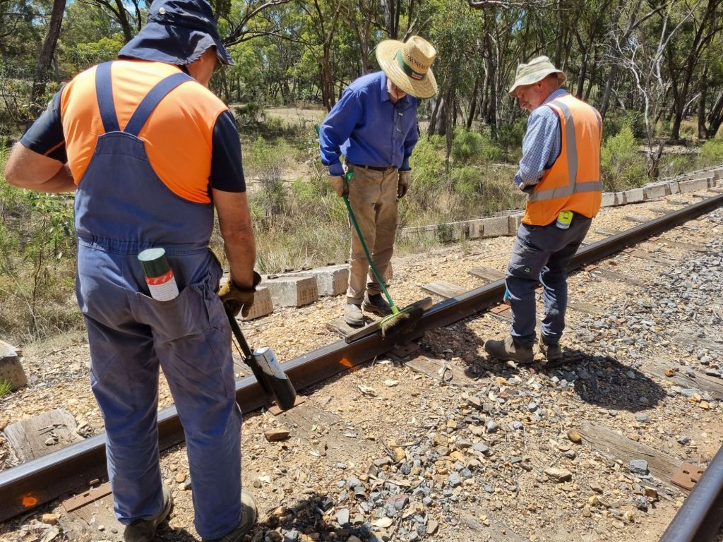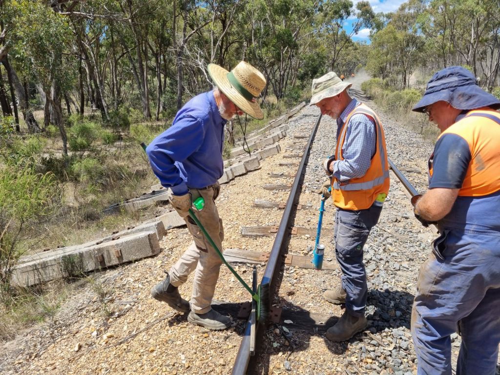 After decades of replacing timber sleepers on a comparatively adhoc basis, the spacings have crept out to being very inconsistent, something we’d like to remedy with the resleepeeing. You’ll notice the extremely high tech device we’ve developed to help with this job… we can probably improve on this, however it does the job.