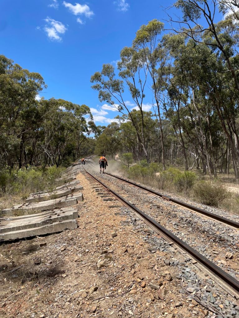 We reached a bit of a milestone today, with all the sleepers needed to re-sleeper curve 20 to Pipeline Crossing dropped out track side, plus quite a fair chunk of the balance down to Bendigo Road.
