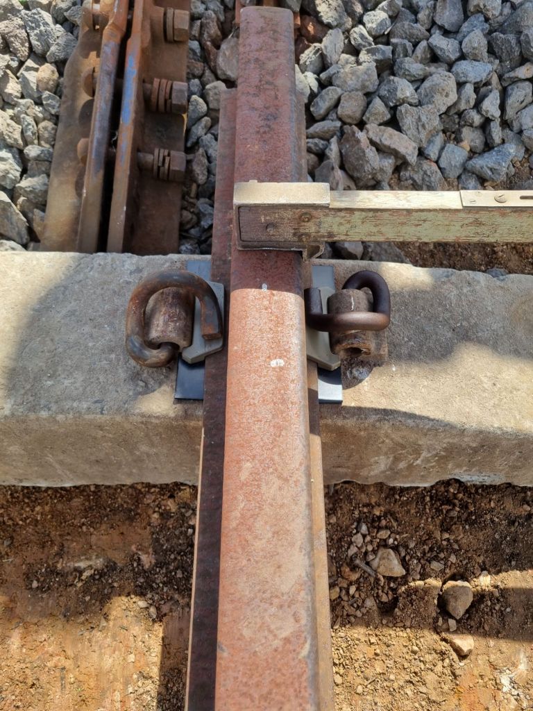 It’s not exactly luck, as there is an engineered drawing for there use with smaller rail, however we can confirm that with 80lb, the gauge is exactly 1600mm! These biscuits are Brown/grey, so a bit different to the normal black ones.
