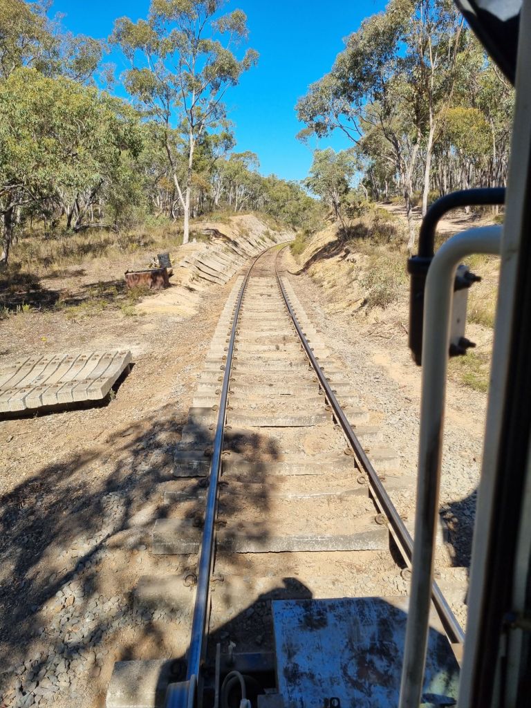 Today’s gang also managed a walk through tidy up of the resleepered section as well as blowing the rocks from the sleepers and rail from this cutting right through to Pipeline Crossing and marking up all the sleeper spacings. All in preparation for after Easter.