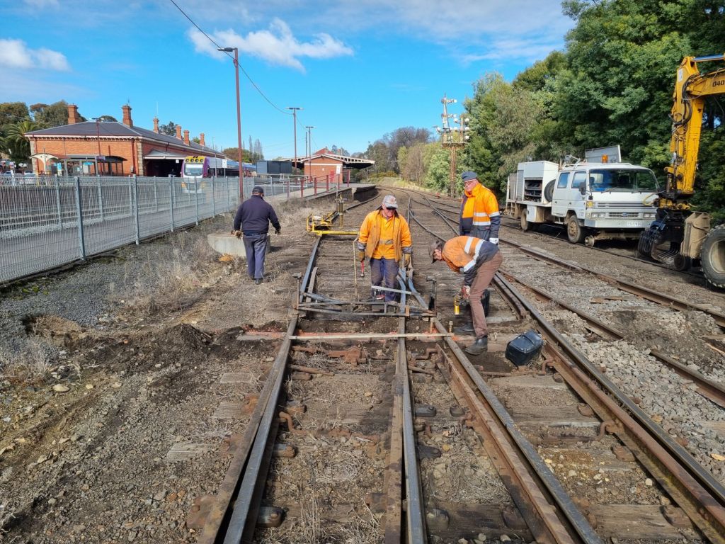 We’ve had a very successful day today, replacing 4 failed timbers in the double compound, which has also corrected the last of our gauge faults at Castlemaine (we were actually well within tolerance, however they’re a sign of things letting go, so best to act before they grow).
