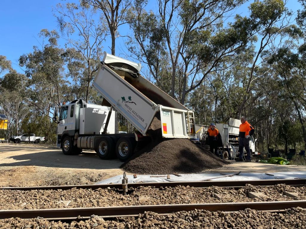 The council has done an excellent job helping out with this project, at this stage the asphalt will be between the rails only, however they’re supplied crushed rock for outside the rails, for easy removal later on to continue the asphalt outwards.