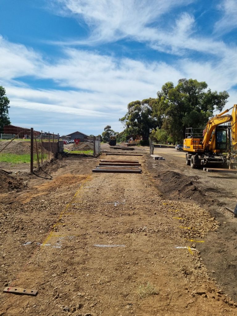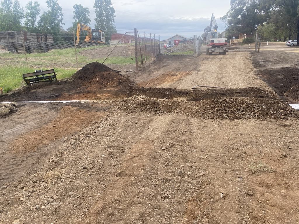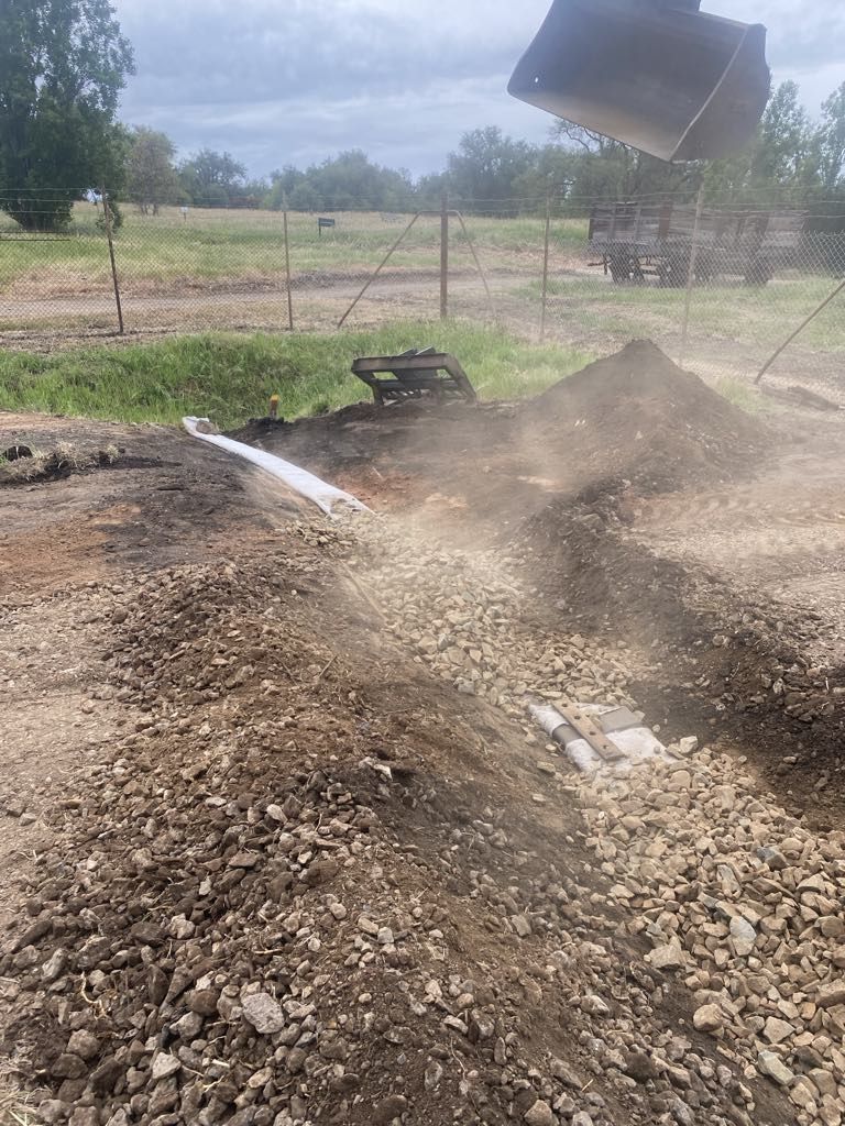 Today began with a ditch, some drainage was installed and it was backfilled with Ballast, this should help lessen the water soaking issue this area has experienced.