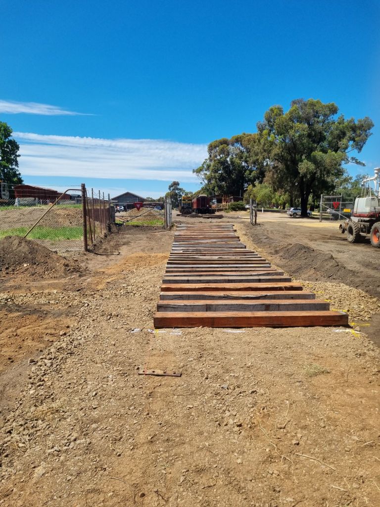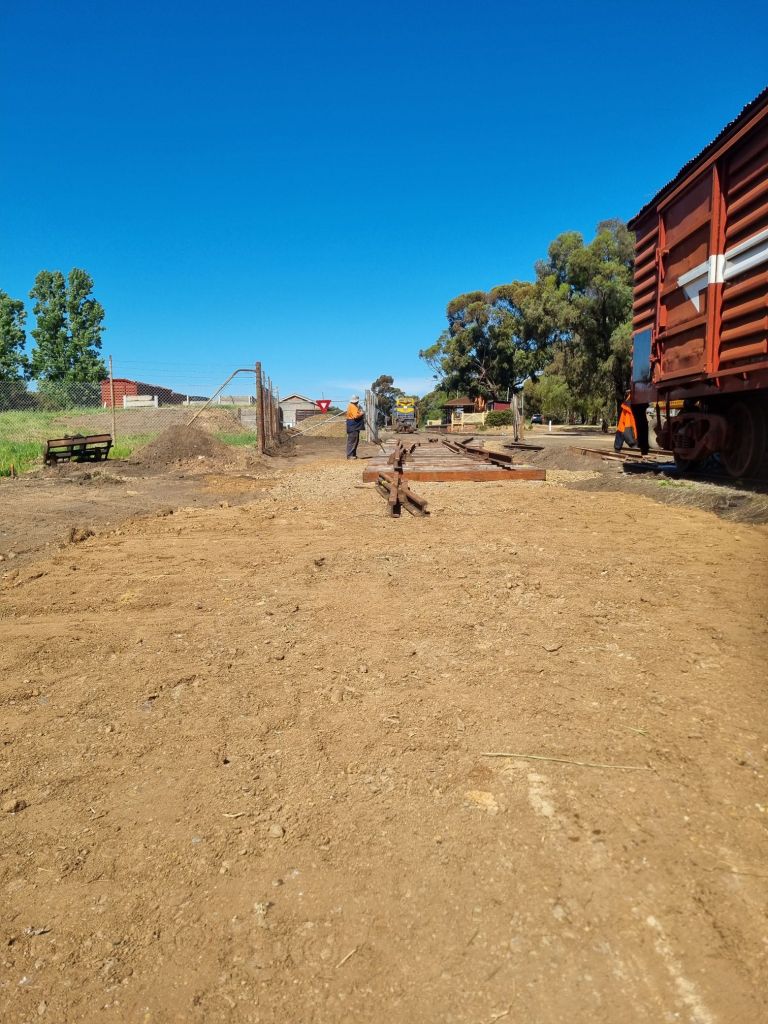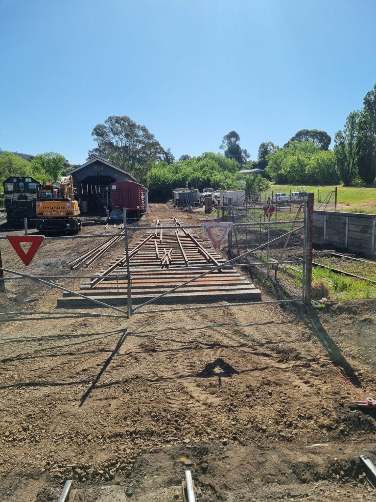 A keen eye will note that given we need to install another turnout immediately off the end of this one, we don’t seem to have made provision for long enough timbers… the short timbers you see in the pic above will be replaced (at least 6 of them anyhow) to support the next turnout – but at this stage for setting up, it’s much easier to lay it out as per drawing and swap them over later before we fasten everything up – we also still need to find a suitable arrangement for the point lever as the old arrangement wasn’t ideal.