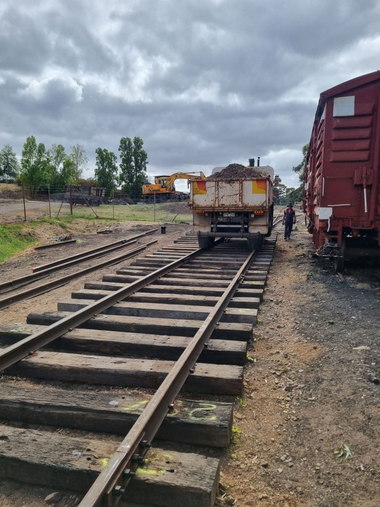 We tried something a little different this time, before installing the curved rails, we ballasted what we could from the tipper and the rest using the digger.