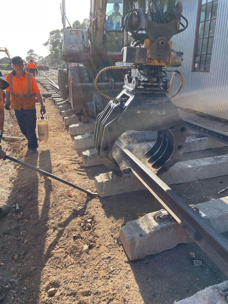 Before long it was into cutting rail ready to install the closures. We got very lucky with the cool weather today for rail cutting, however a good dampen down before and after the cuts was still a good idea.