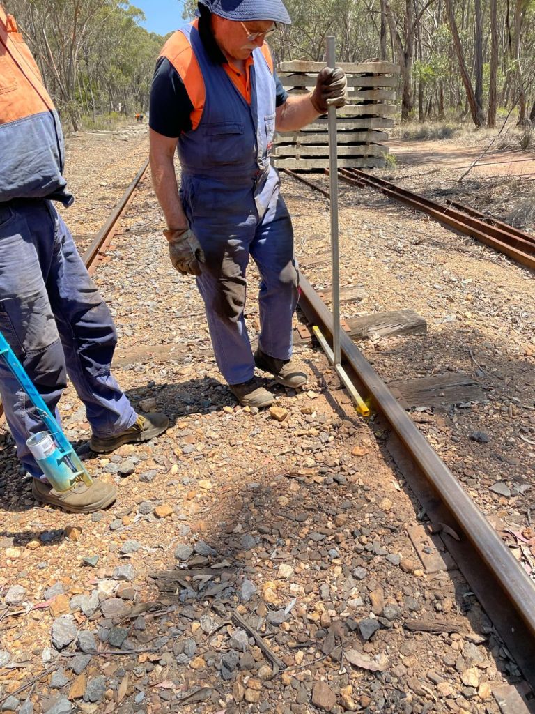 It was a bit of a relearning curve as our trusty sleeper gauge had been packed away, and while it was being found, a stick from the bush was called upon to substitute.