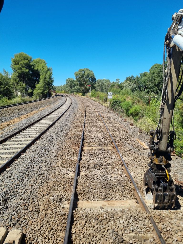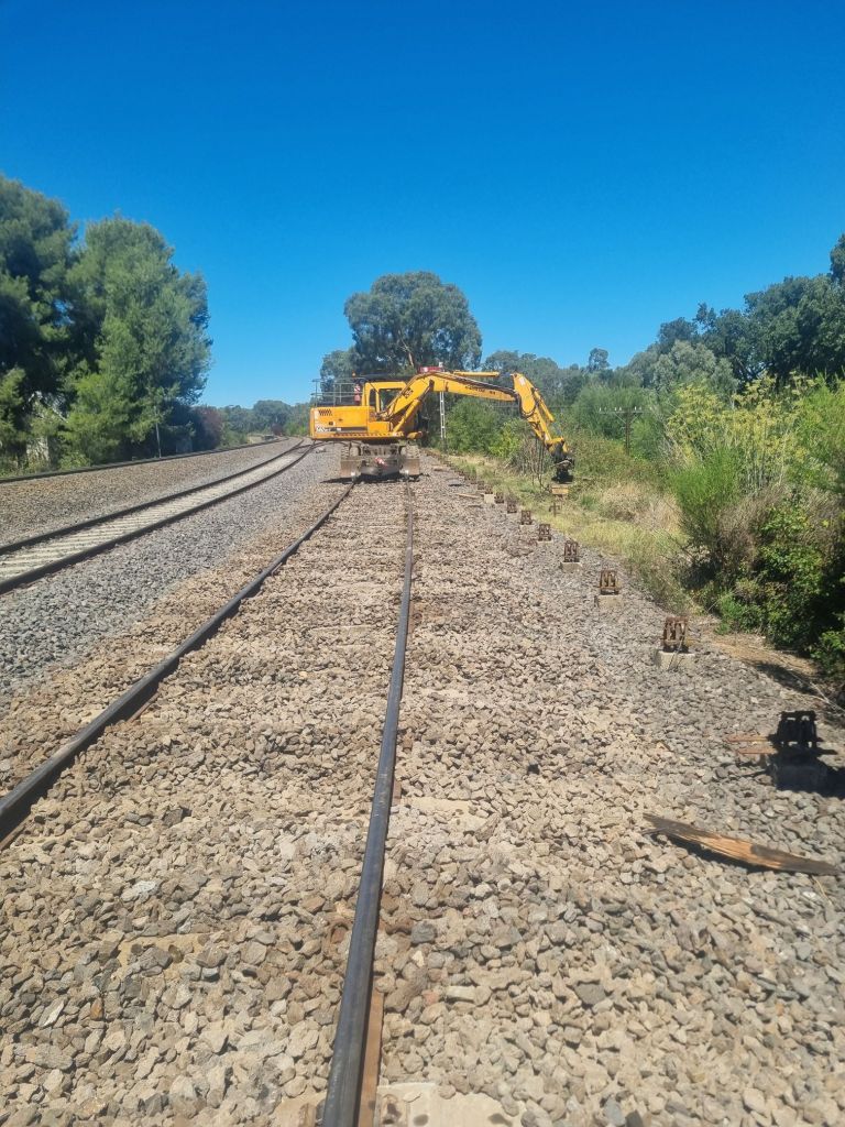 We had a very successful day today, with around 75 concrete sleepers inserted under the track for tomorrow’s crew to clip up.