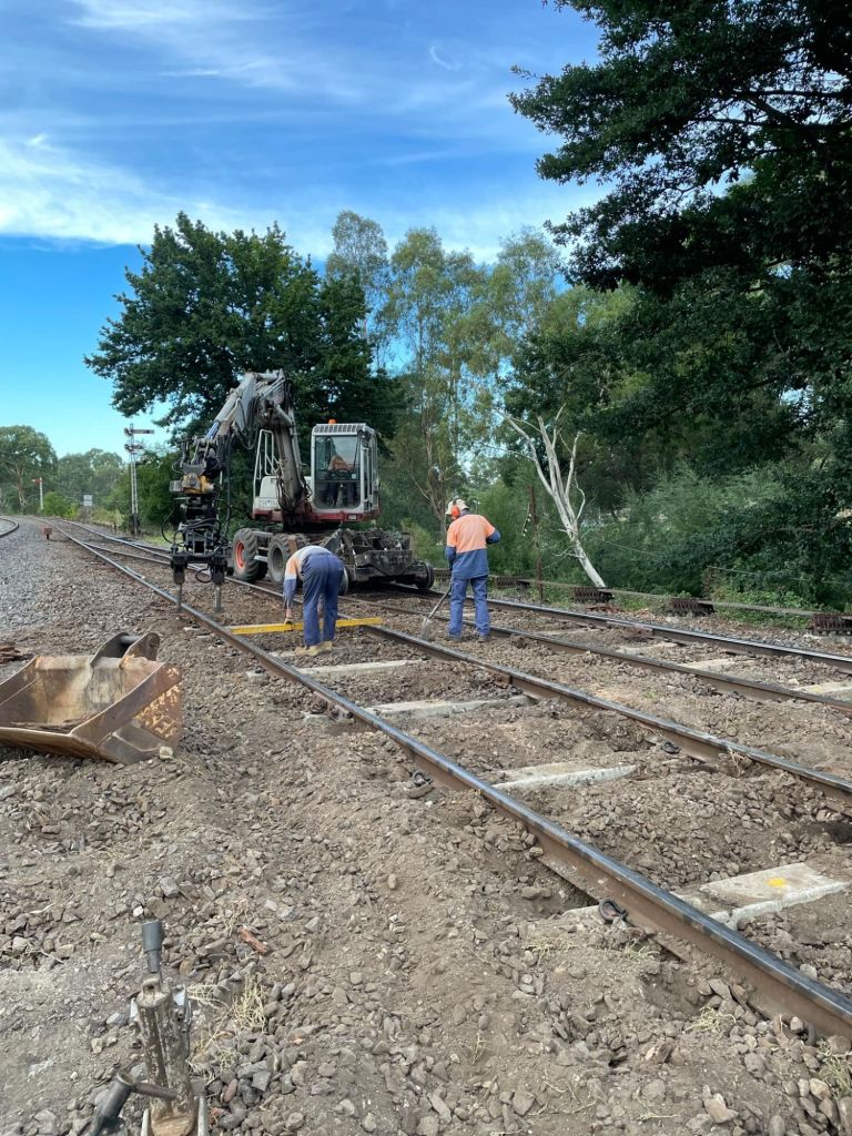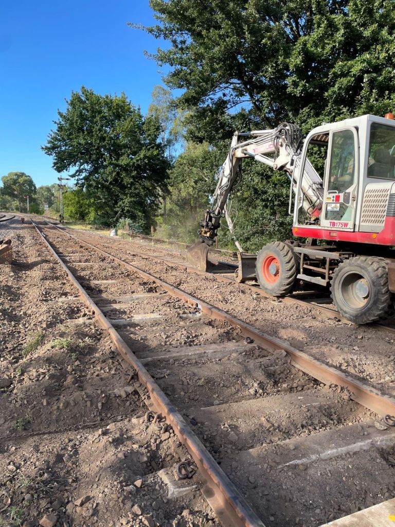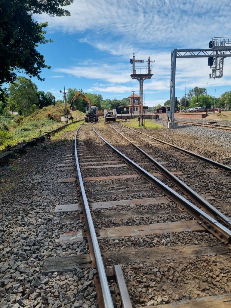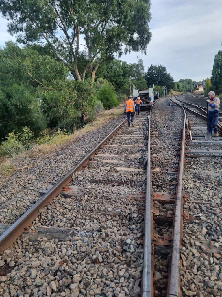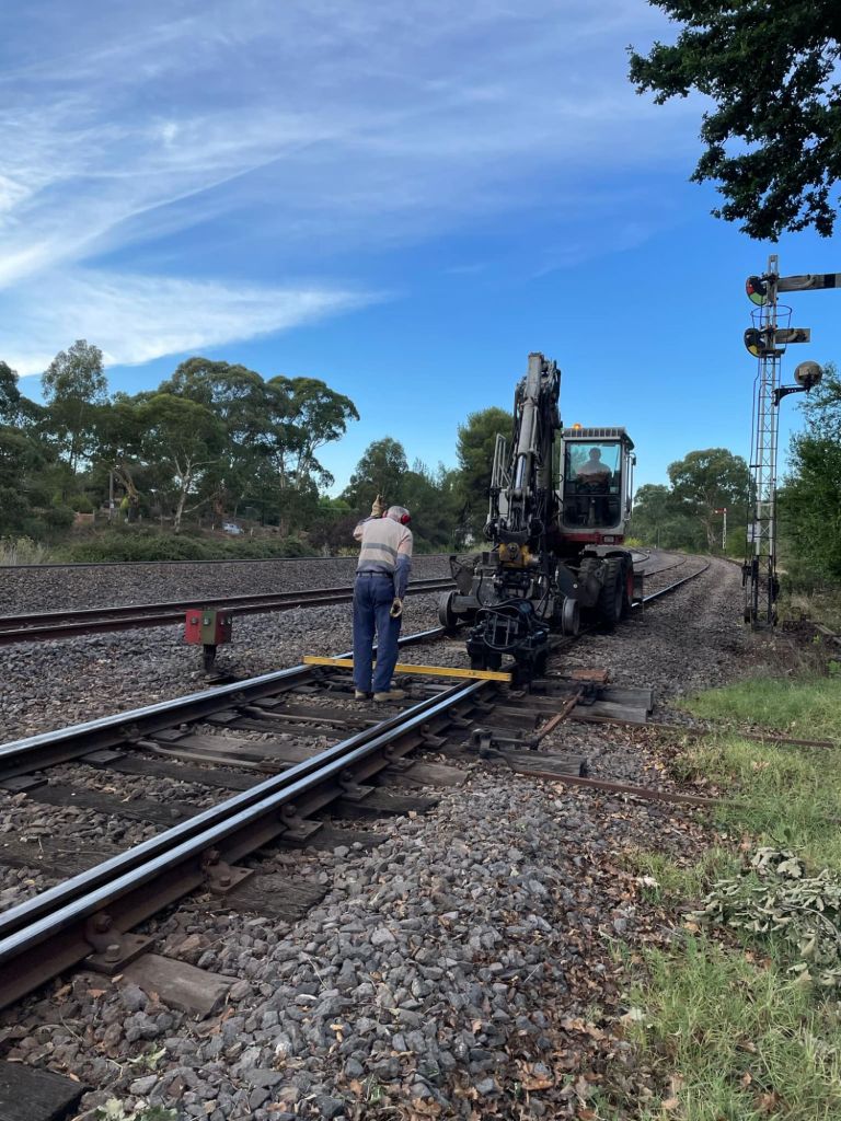By the end of today, the Vline contractors were making excellent headway, getting the track back in place up at their worksite, they plan on having the job completed tomorrow. VLine have ensured that any timber sleepers in our track that required lifting for these works have gone back as concrete, which helps us out greatly, it’s not a massive number but it’s certainly not insignificant.