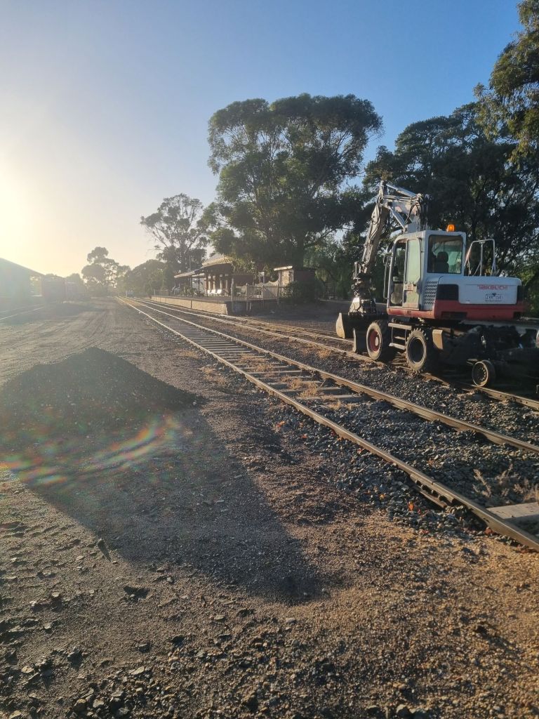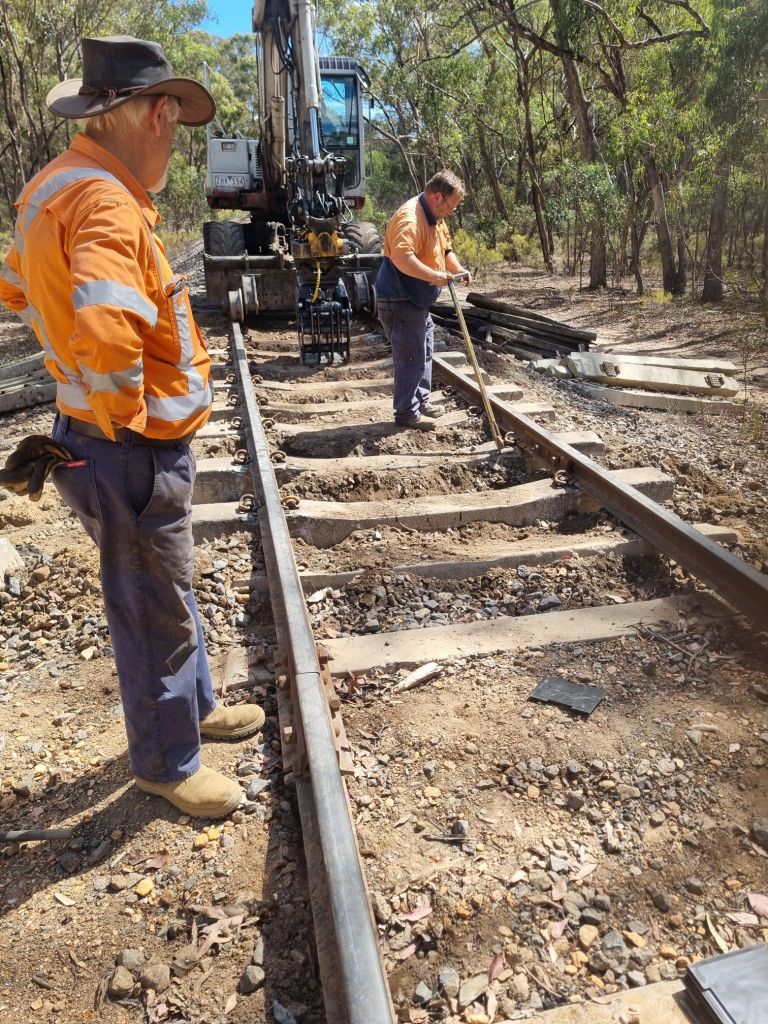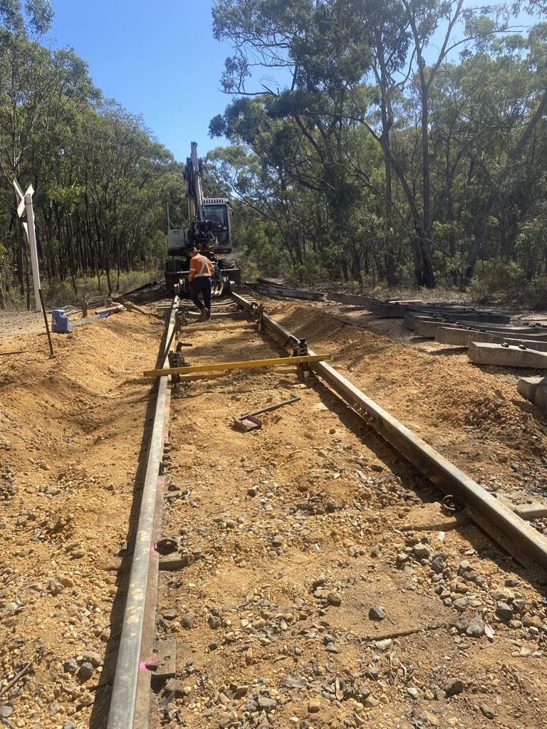Although the crossing had been relayed in concrete sleepers some time back, at the time we were unsure what sleepers were coming, so we hedged out bets and put in low profiles. Unfortunately this was the wrong choice as we’re installing full depth almost exclusively between Maldon and Muckleford so it was a case of do we live with the oddity or simply replace the 35 low profiles will fulls and do the job properly – we chose to do the job properly.