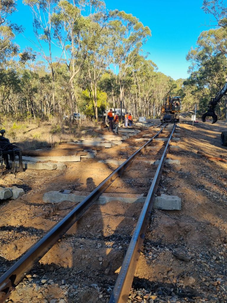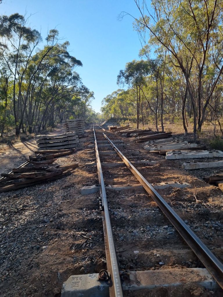 Unfortunately for reasons that we can’t remember, when we rerailed through here many years ago, we set the joints at odd locations, meaning using concrete sleepers was near impossible as fishplates were in the way, so we’ve reset the joint stagger to a half rail length to overcome this issue.