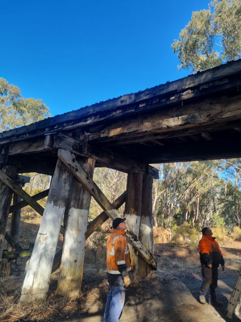 We’ve got the big bridges to go now, Winters Flat and Muckleford Creek, we’re pretty confident of knocking over Winters Flat tomorrow, then Muckleford Creek on Thursday, all going well. We won’t need a gang tomorrow, but a gang on Thursday would be a handy thing, as while we’re at Muckleford Creek, we can tidy up a bit of stuff still outstanding from last year’s works there. Thursday crew will meet at Maldon at 8am, the on site from 8.30am.