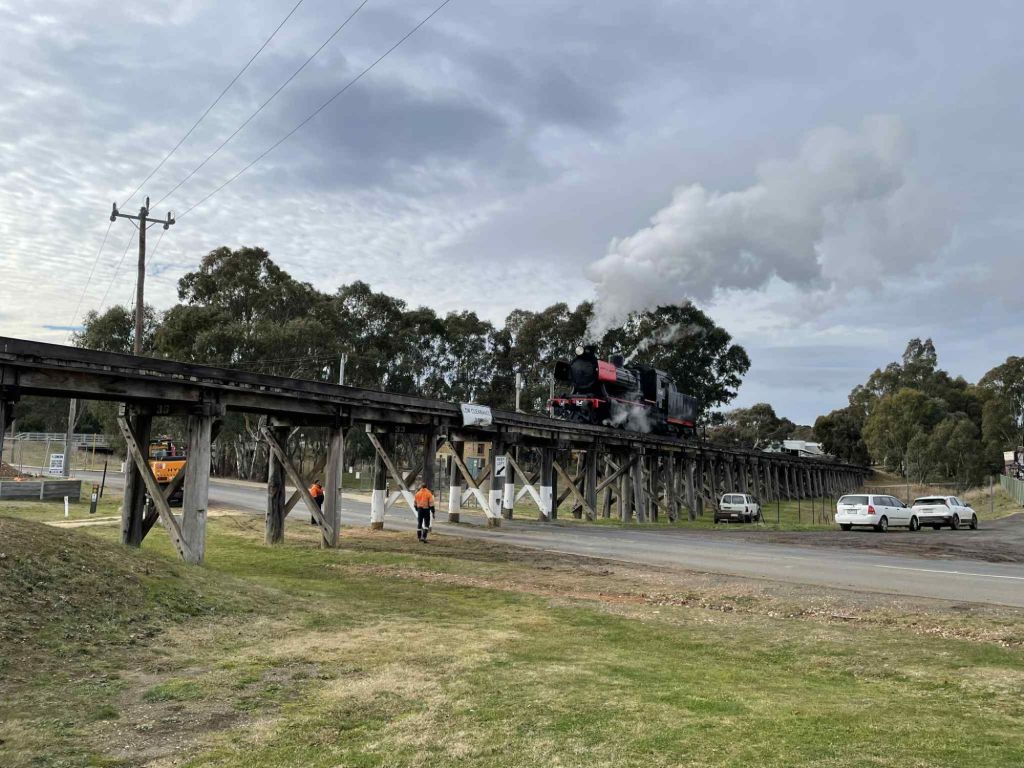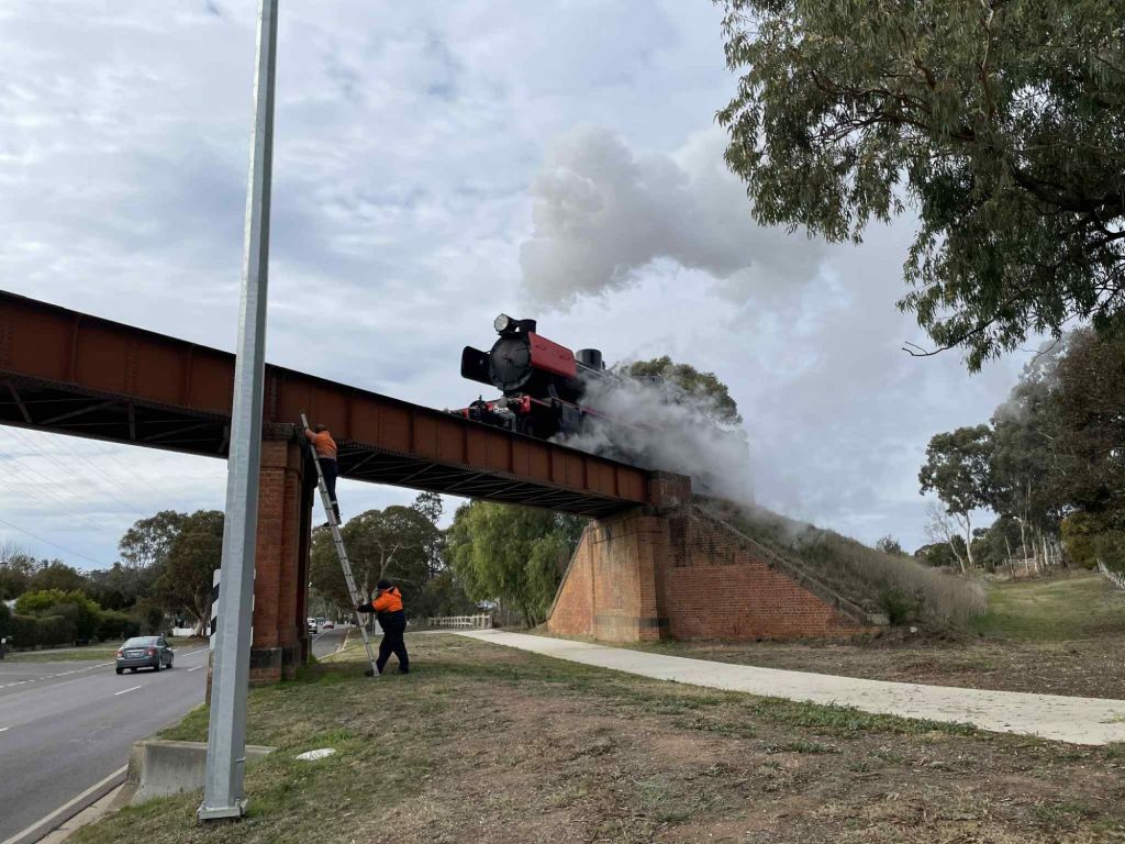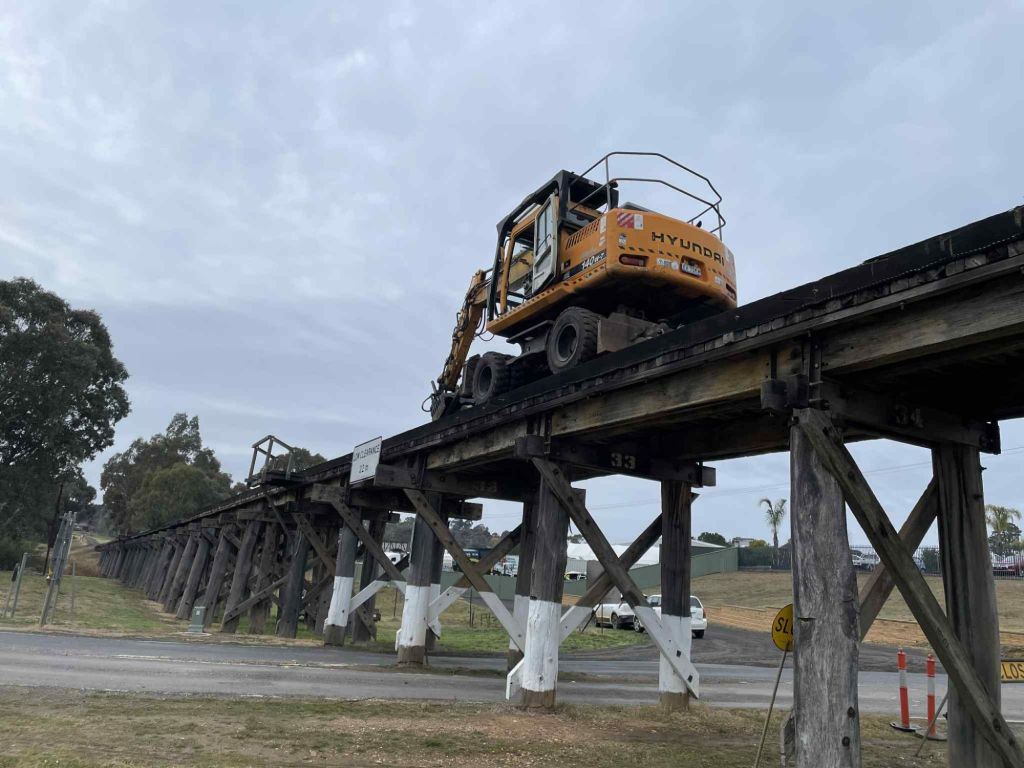The opportunity was taken to observe Pyrenees Hwy Bridge under load, nothing of concern, just to get intimately acquainted with how much things move realtive to each other – nothing of any excitement was observed thankfully.