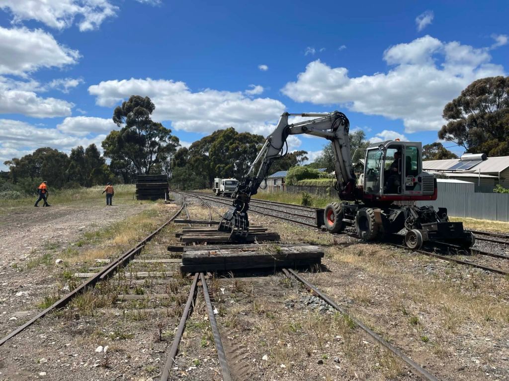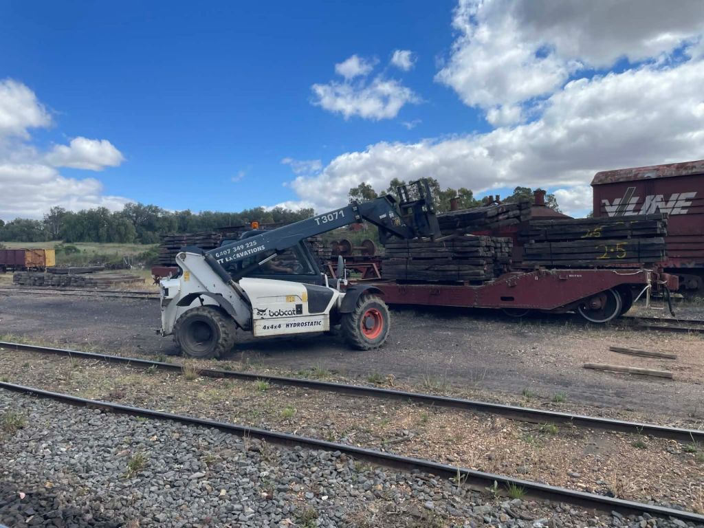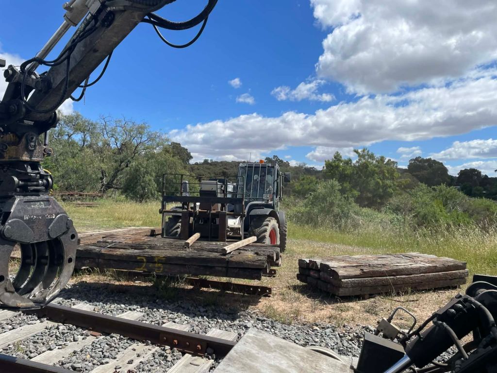 Timber sleepers were bundled, strapped and stacked at Maldon, as we had ended up with quite a few half packs that needed combining.