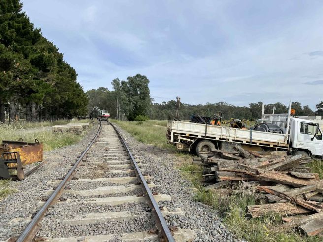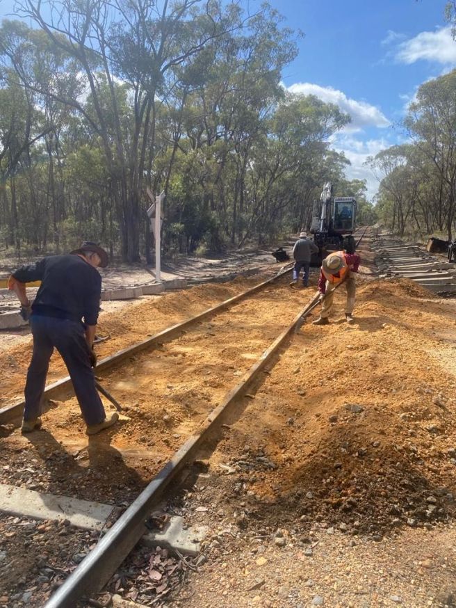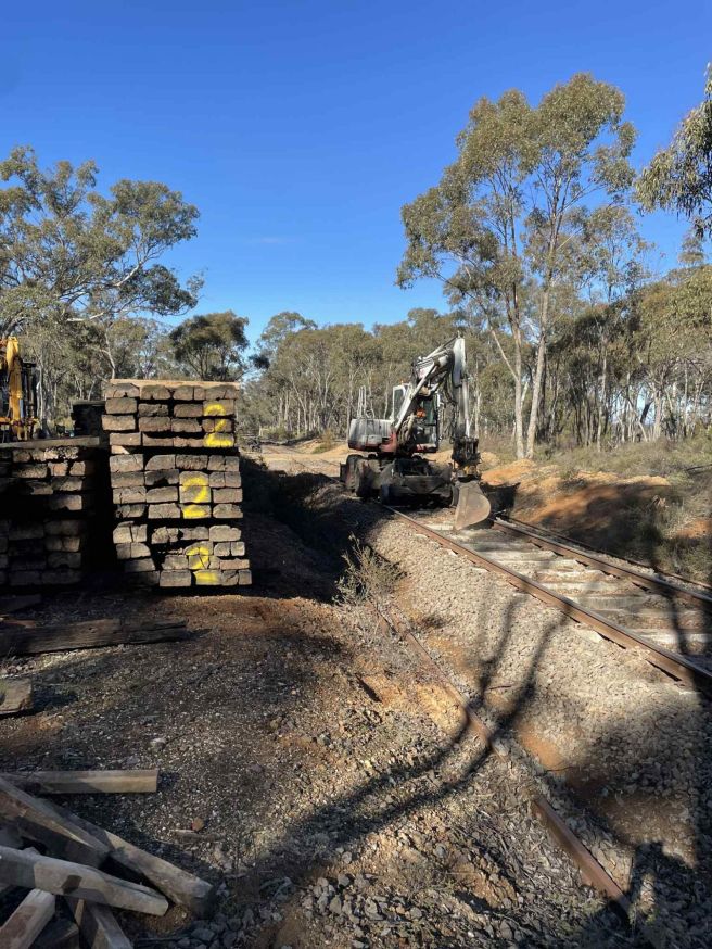 September – In Maldon Yard a few point timbers and sleepers were replaced before a start was made on re-sleepering from Chapmans Lane to Muckleford Creek Bridge (This was in addition to the planned resleepering works for 2025). 422 Concrete Sleepers and 9 Timber Sleepers installed.