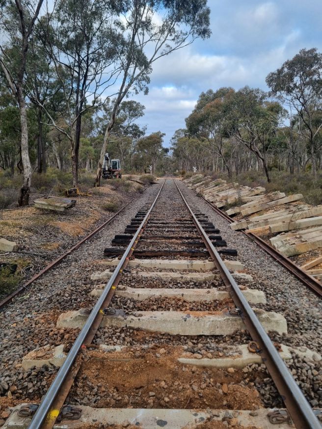 - Replace the remaining 1km of timber sleepers between Donkey Farm Trk and Muckleford Creek Bridge (Approx. 1320 sleepers)
