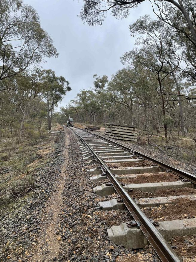 By the end of 2026 we aim to have our Mainline Sleepers being: Maldon to Muckleford: 100% Concrete Sleepers, Muckleford to Castlemaine 70% Concrete – it’s very likely we’ll fall a bit short in the Castlemaine Section, however it’s good to aim high.