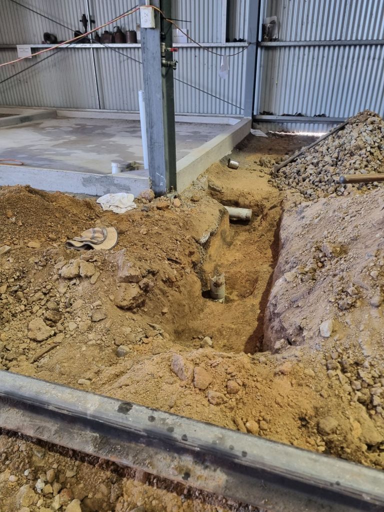 We’ve popped a drainage line in behind the pit, giving the water somewhere to go. We started installing crusher dust into the trenches for the slab, being this large to allow for jacking beside the pit, more of this will occur once the concreter is on site next week.