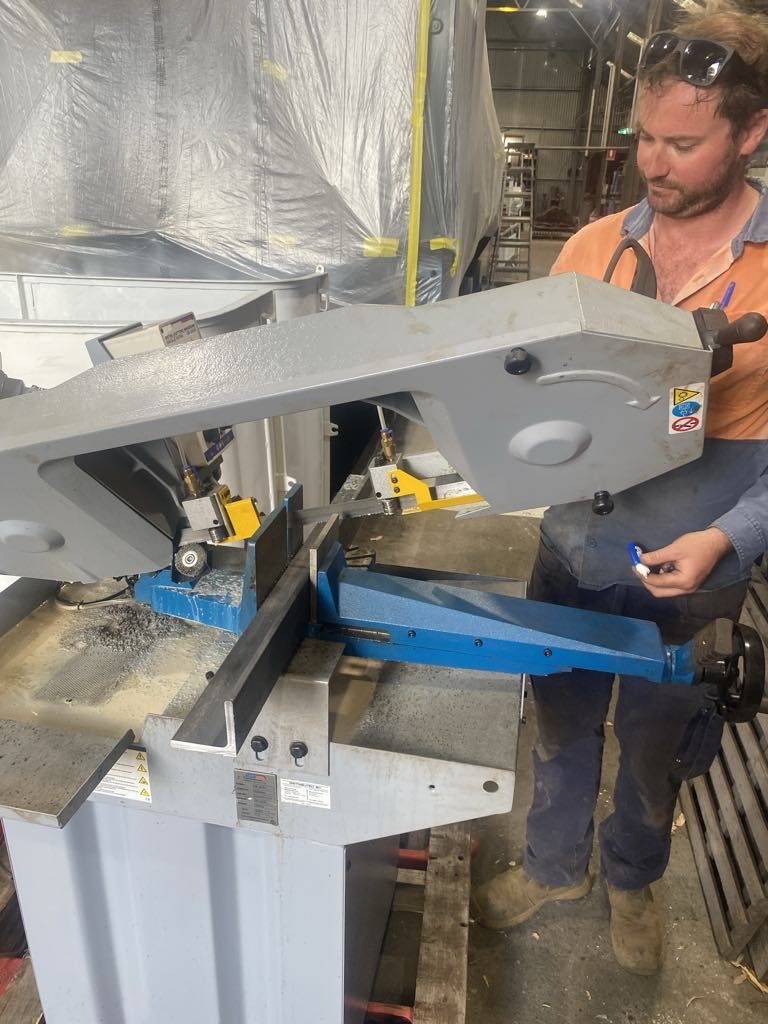 Our new band saw has proved invaluable in this task, cutting the various components, giving marvellous angle cuts.