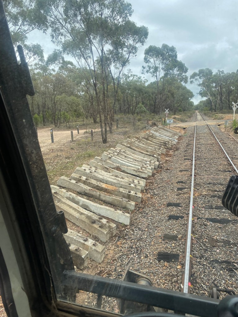 The very slow process of laying sleepers out began on Tuesday getting us just short of the curve before the long straight to the bridge.