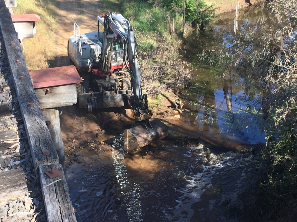 The majority of the list of to dos following yesterday’s track walk are now complete. The first being the abutment at Muckleford Creek, where 2 buckets of rock were applied and compacted in, while another couple of buckets of dirt were used to shore up the sheeting to ensure it doesn’t settle too much further.