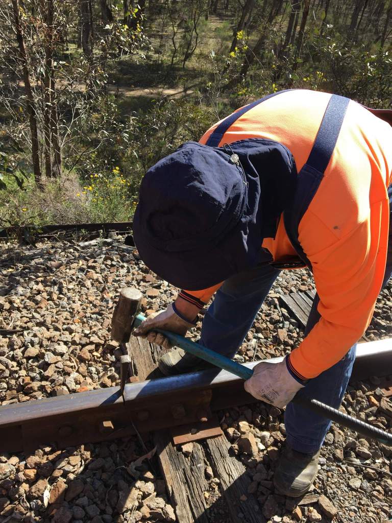 Following the recent track inspection, we’ve identified all the loose fishplates along the track, with most requiring replacement bolts to correct. So that’s what we did on Friday afternoon and again today, with a good 200 or so bolts installed so far, today’s small gang of 3 is certainly feeling it now!