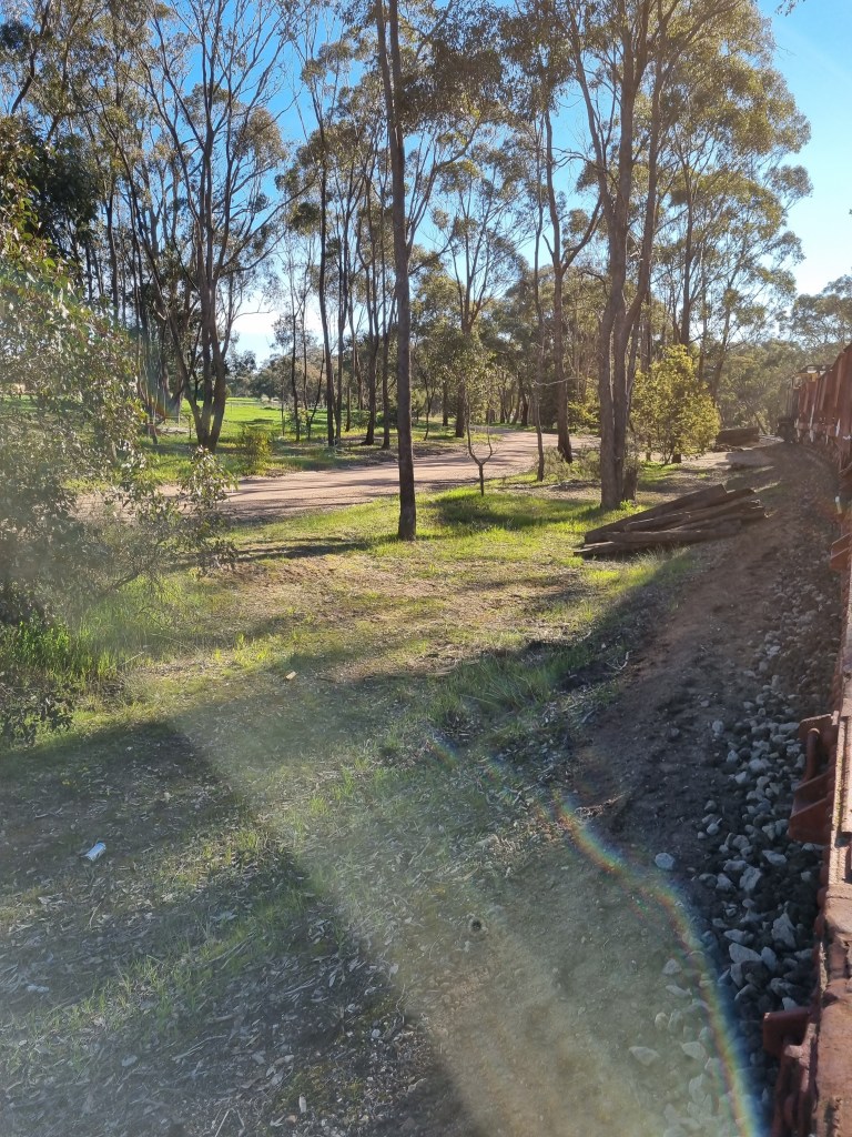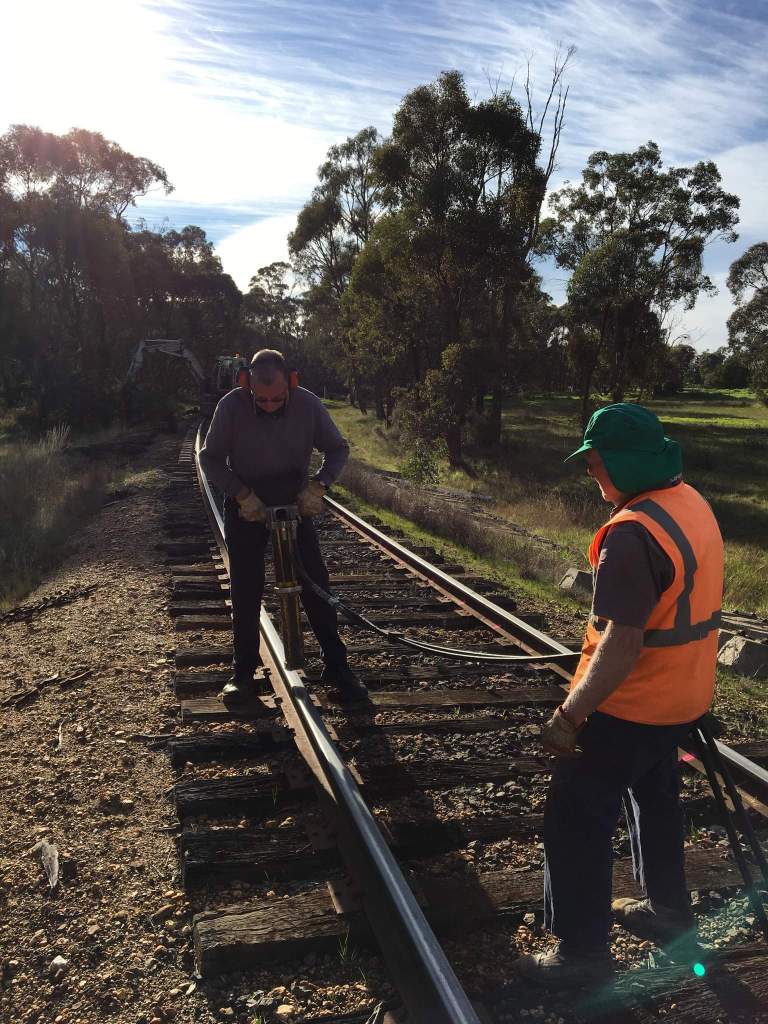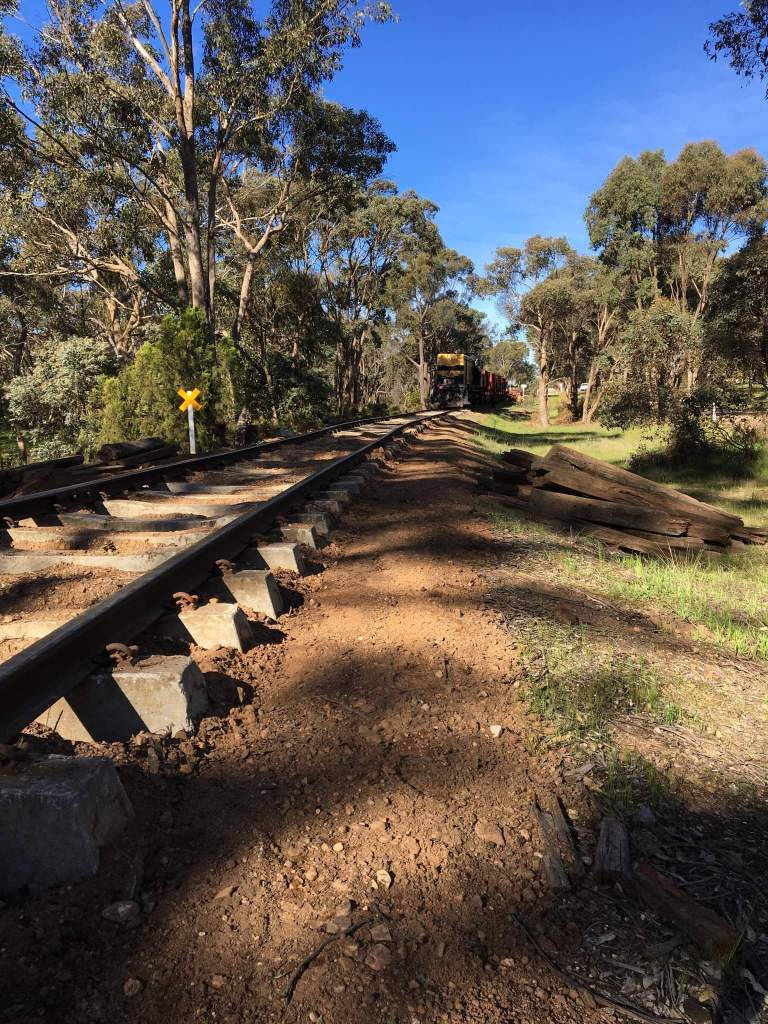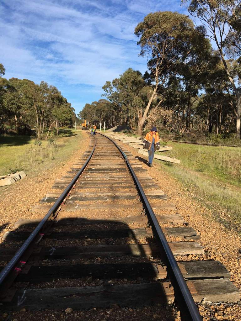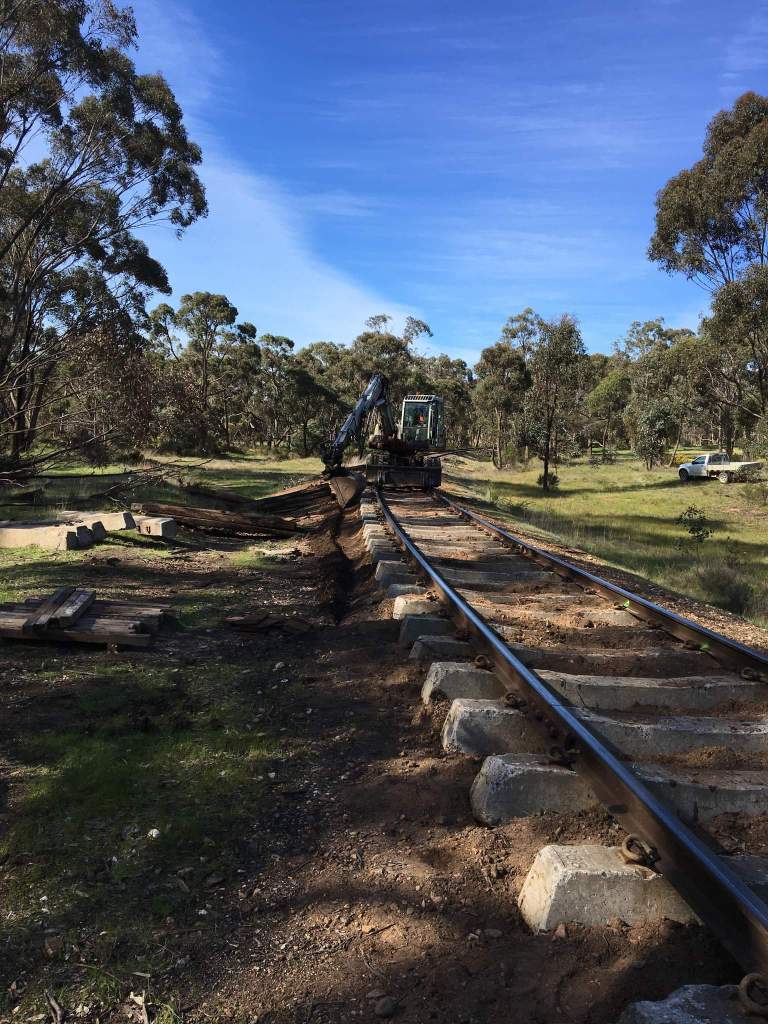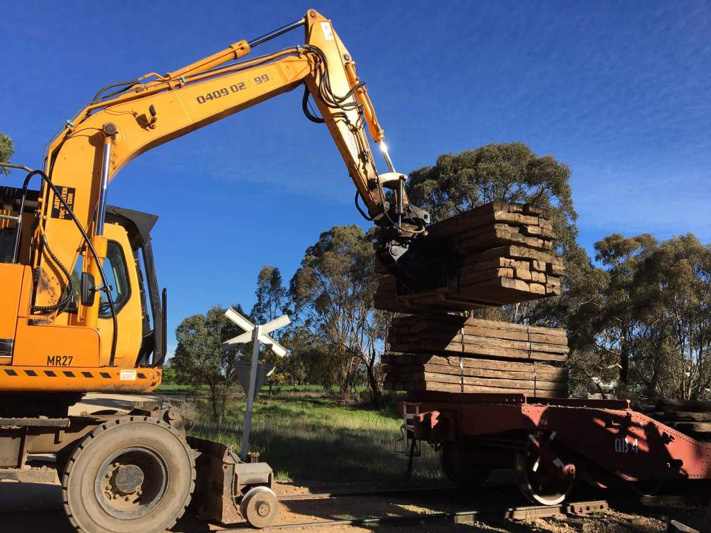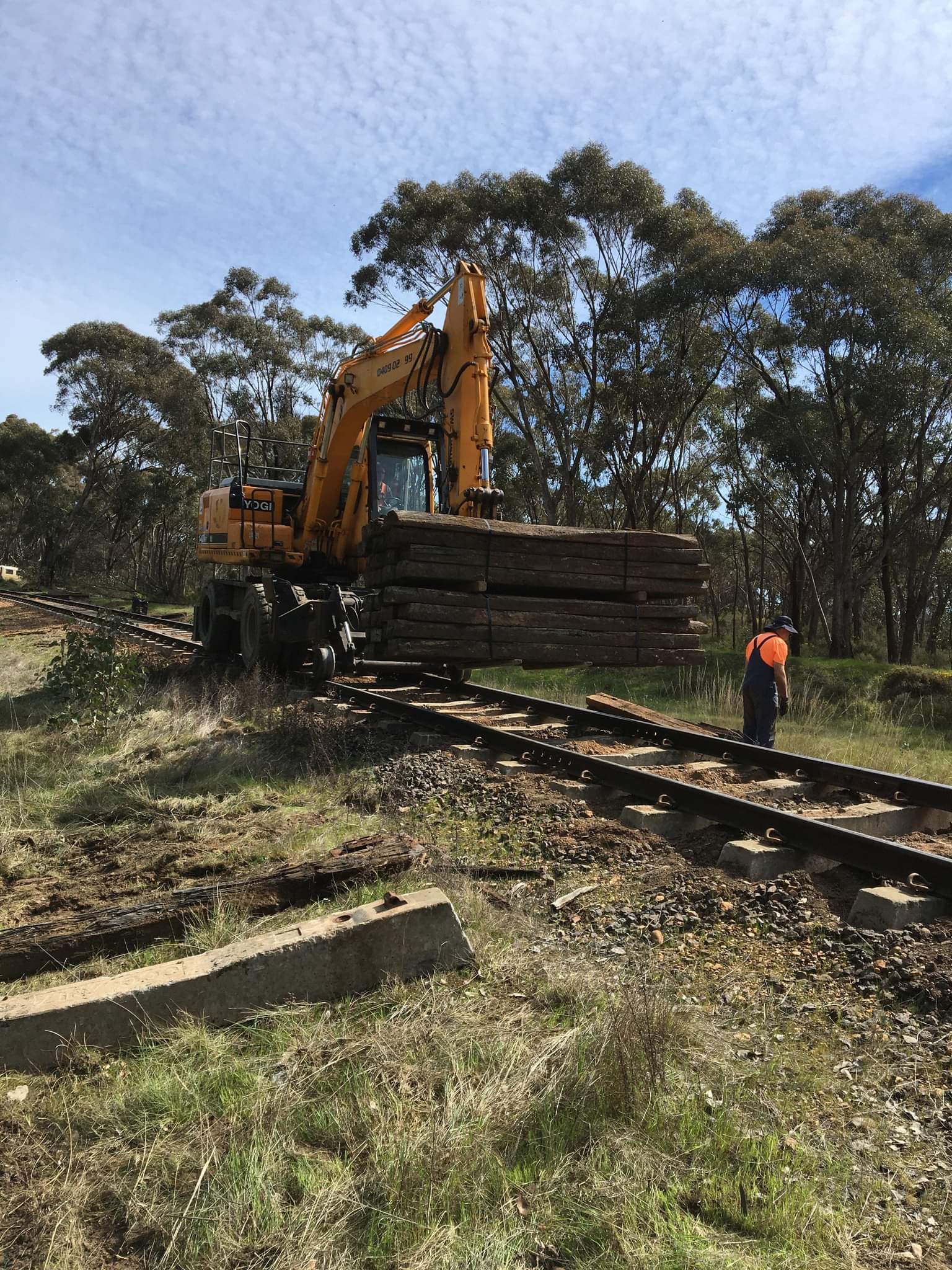 Just as a note re life span of these timber sleepers in our climate, the grey box are weathered and probably about 3/4 of their new size, but still usable (we’ll cascade them into Maldon and Muckleford Yards), the red gum is fully life expired, generally coming out in lumps.