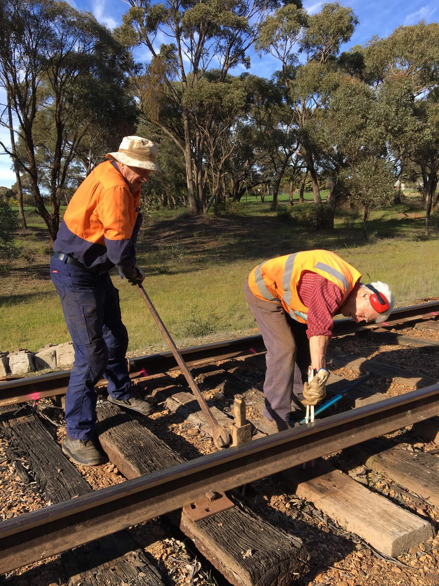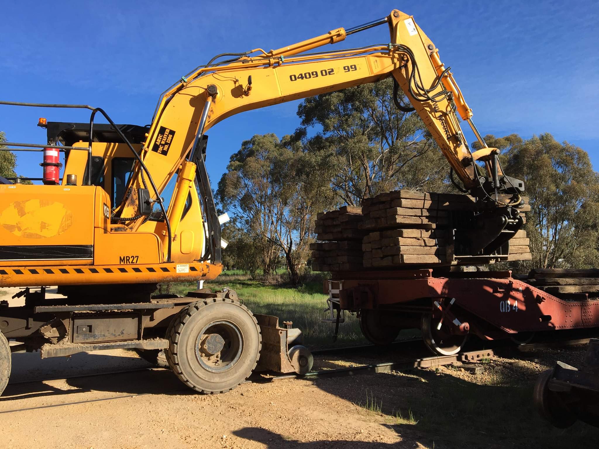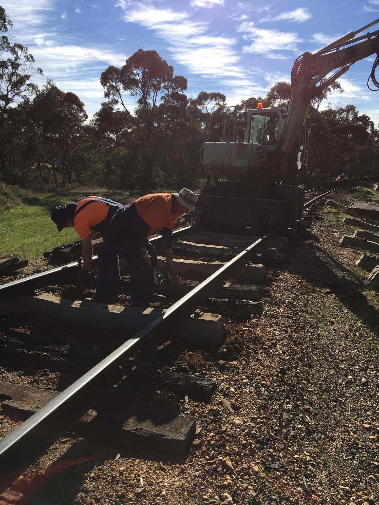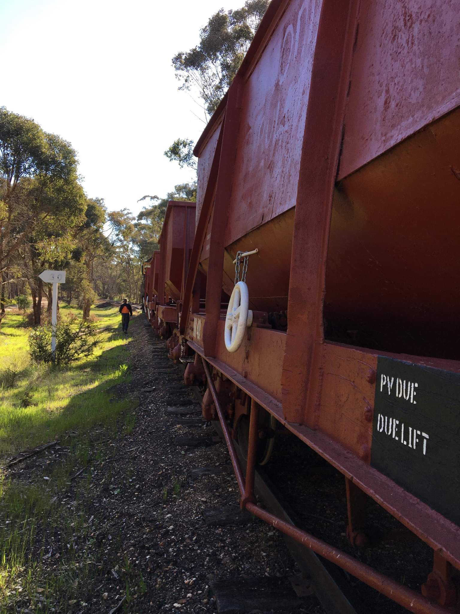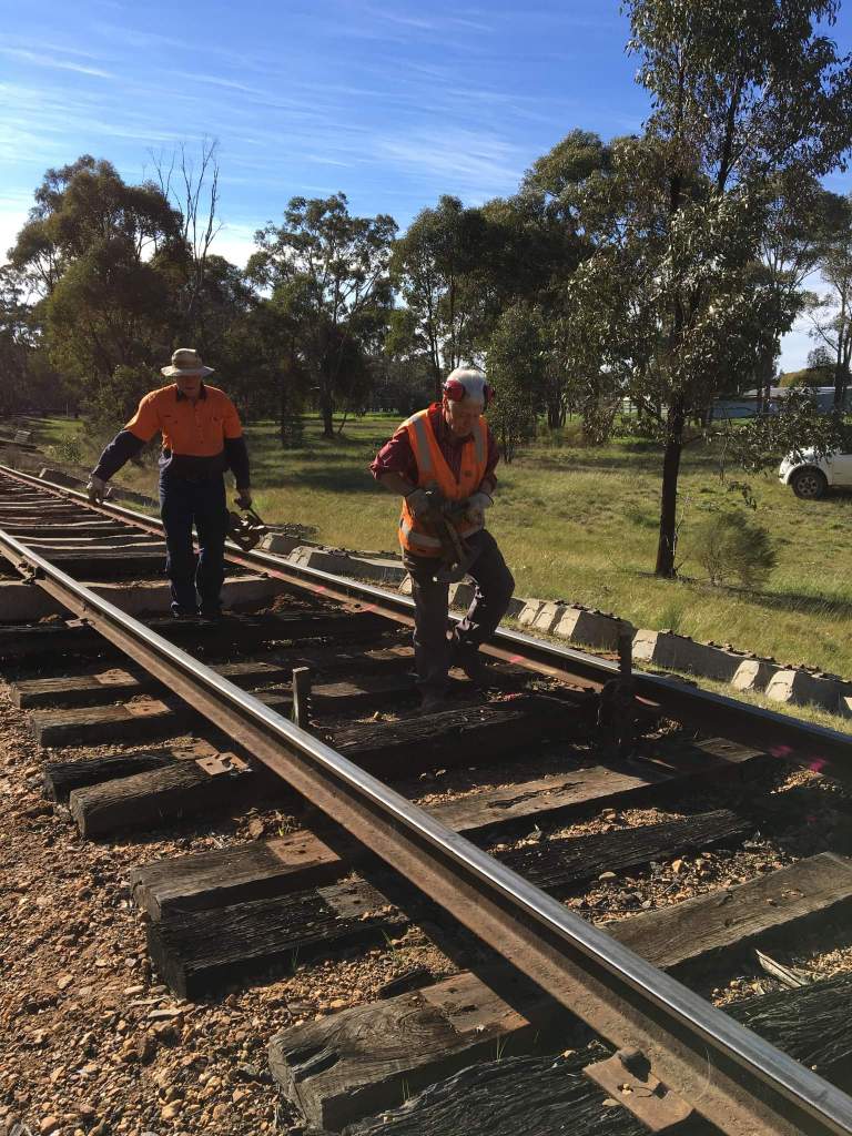 Just as a note re life span of these timber sleepers in our climate, the grey box are weathered and probably about 3/4 of their new size, but still usable (we’ll cascade them into Maldon and Muckleford Yards), the red gum is fully life expired, generally coming out in lumps.
