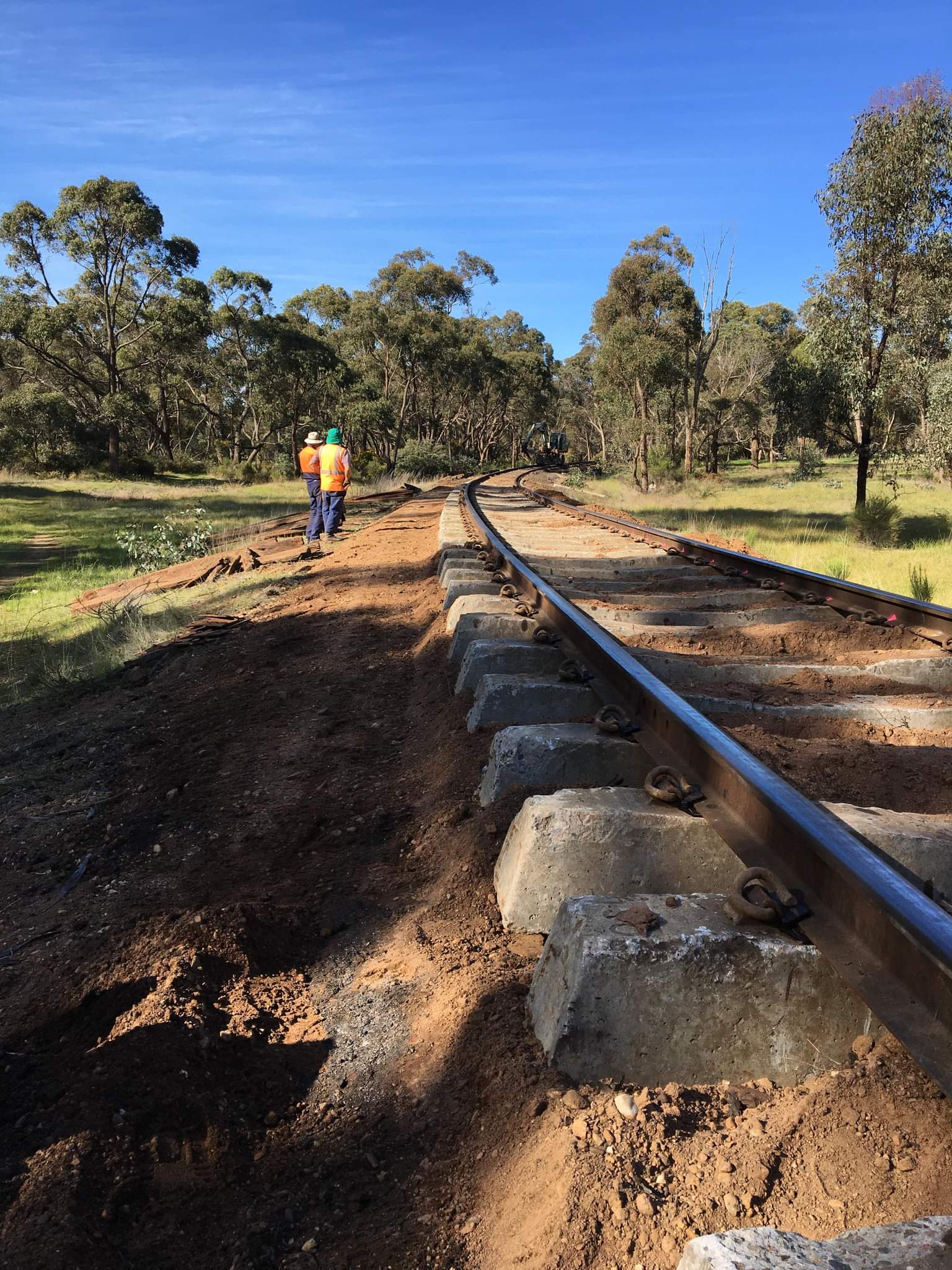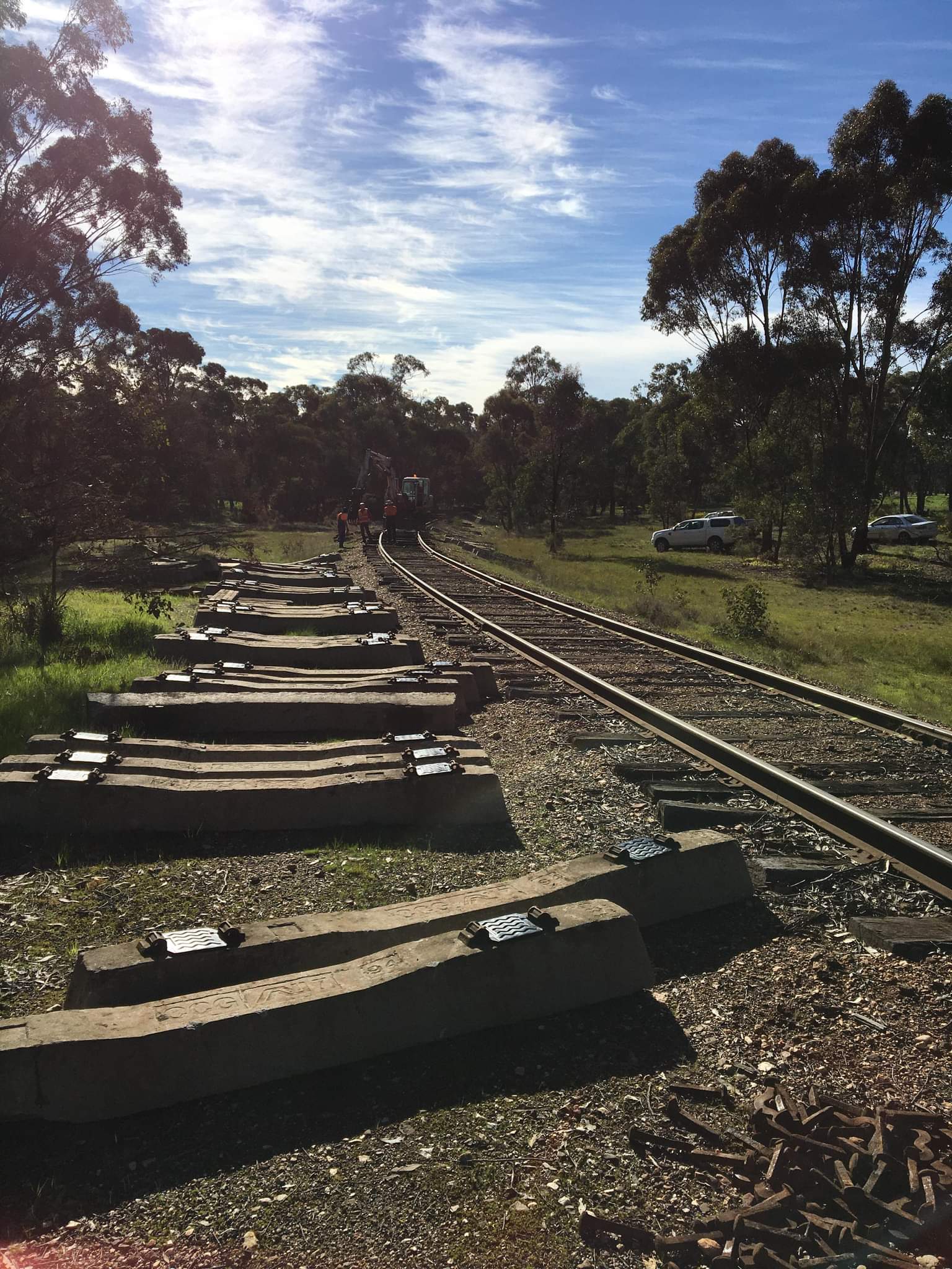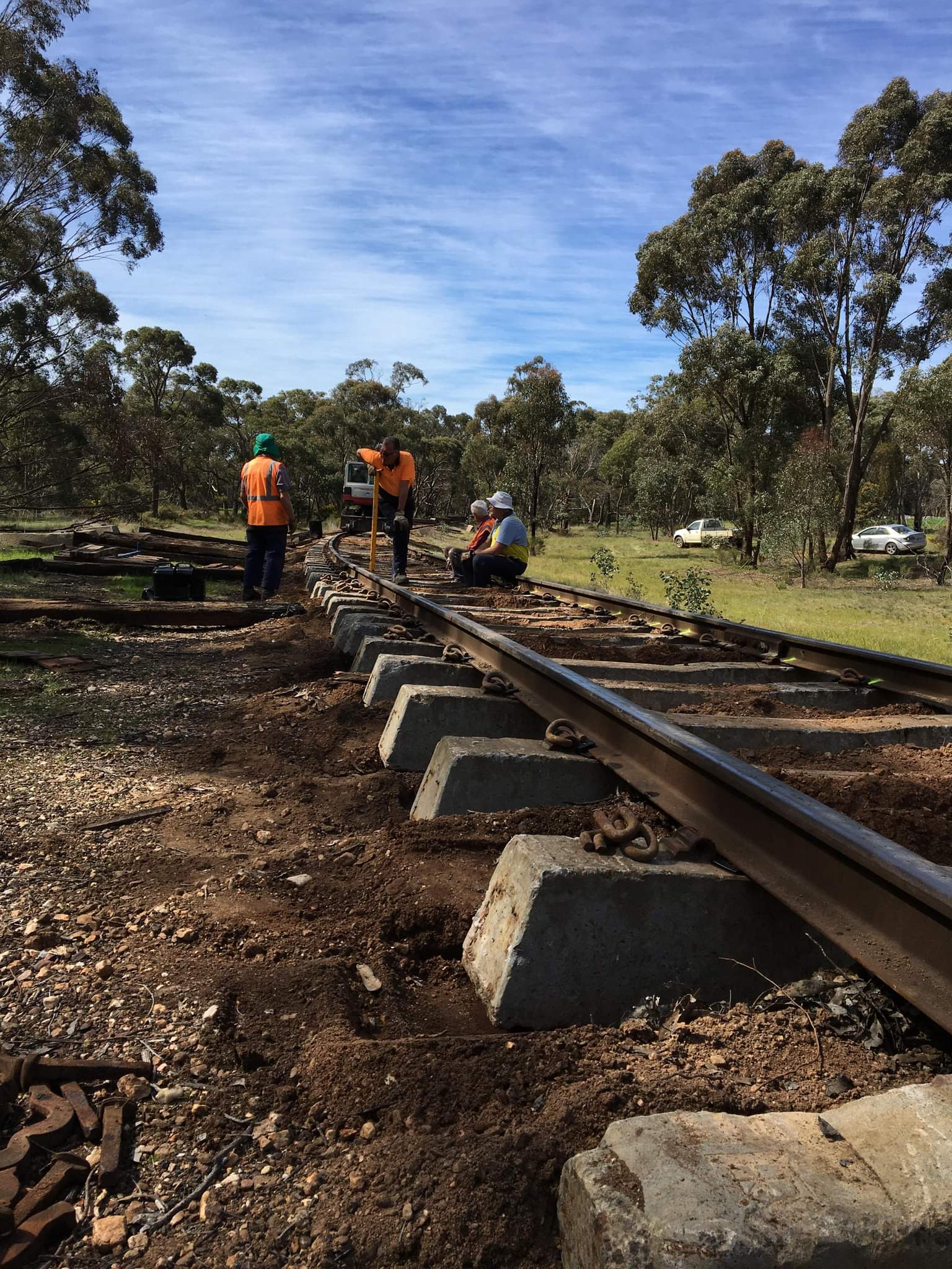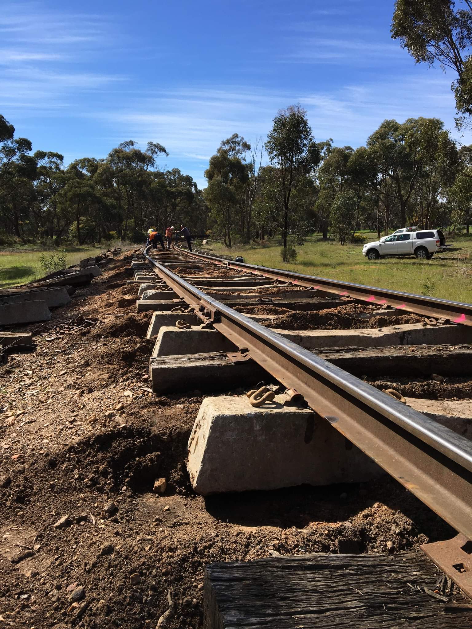 So this curve, which is only approximately 350m long has taken around 7 workdays to complete (not including all the preparation time). 466 concrete sleepers have been installed, close to 250t of ballast and a very good amount of human effort. But that effort should see the curve last for a very long time, with minimal maintenance. Once we’ve re-railed more of the Muckleford- Castlemaine section, we’ll be getting into refurbishing more of this section in this manner, which will quite quickly reduce the ongoing maintenance of our running line.
