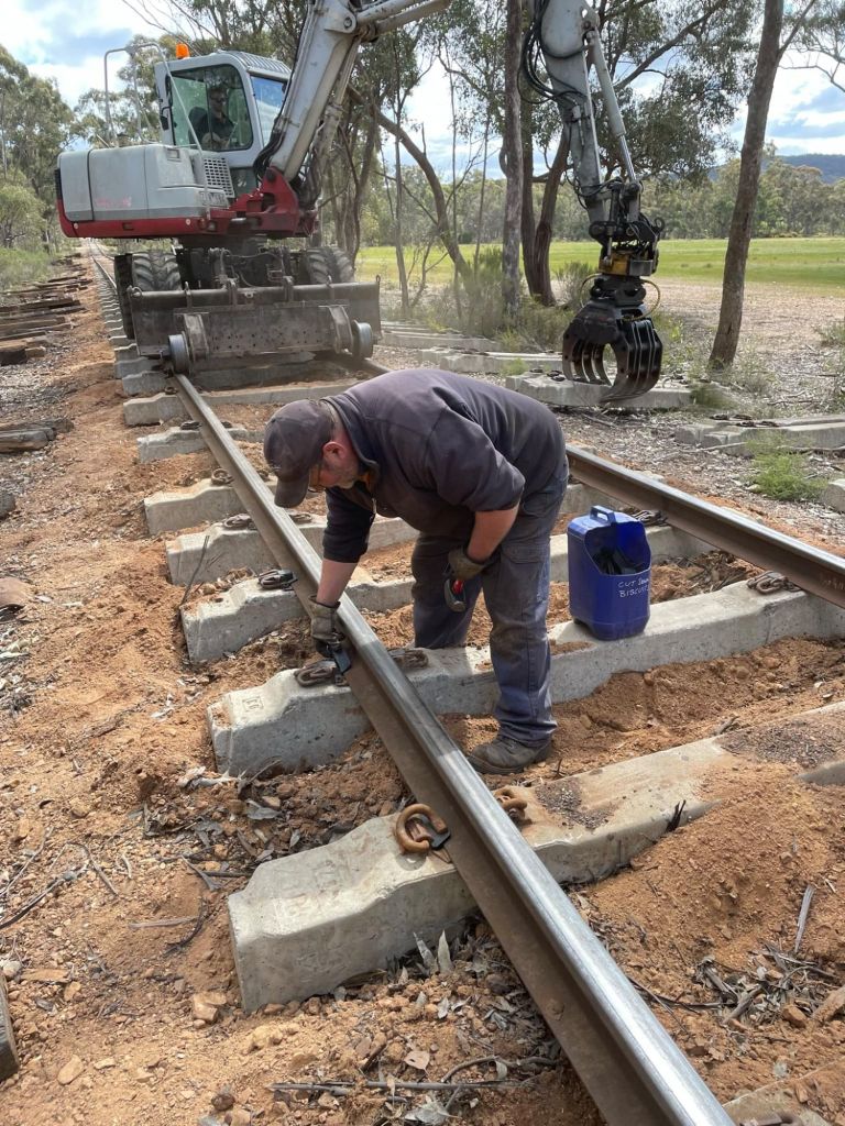 We’re getting there, only about 770 left to install now to remove all the timber sleepers between Maldon and Pipeline Crossing.