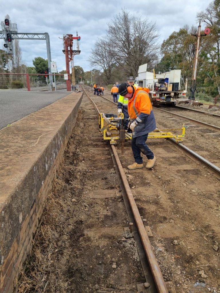 It was all pretty normal process stuff for us these days, however we made use of the recent resleepering with screws to allow the sleeper plates to be kept in position and gauge automatically held for us without needing to do any additional work. We were also able to drive a dogspike down the screw hole without having to redrill or crossbore – a big effort saver.