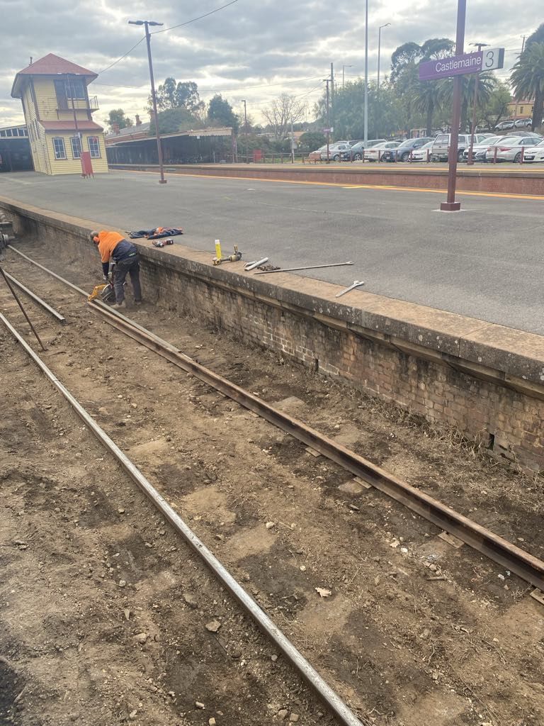 Tomorrow’s crew will meet at Castlemaine from 8 am, when we’ll complete the last 33.7m of rerailing (that’s the last length of 94lb we have available). It may be quite some time before we get back to complete the rest of 3 road, however this will remove the very worst of the old rail.
