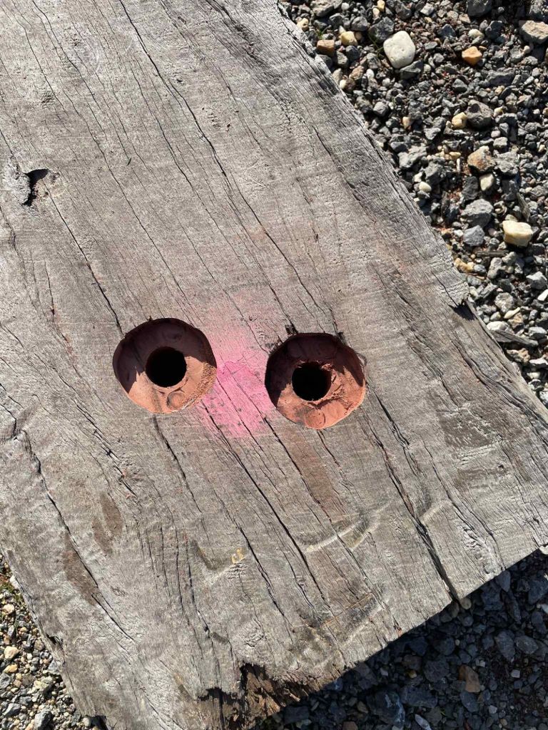 It’s after this that the countersink is carved out, then a really simple job of placing it back in the correct location and dropping the bolts through – tighten bolts, backfill and job done.